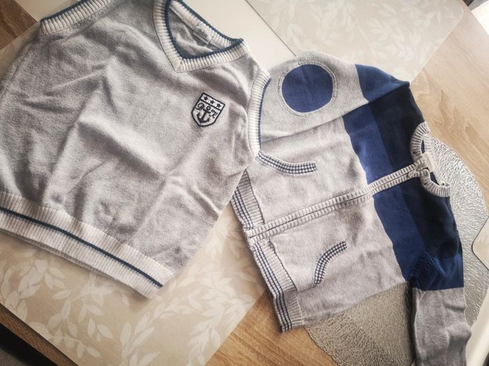 Ensemble pull sans manches et gilet zippé garçon Très bon état Taille 24/30 mois Réduction sur lot ⚠️ Envoi rapide et soigné 💫 Maison non fumeur 🚭 Dépôts des colis du lundi au vendredi 📦 A bientôt 😉