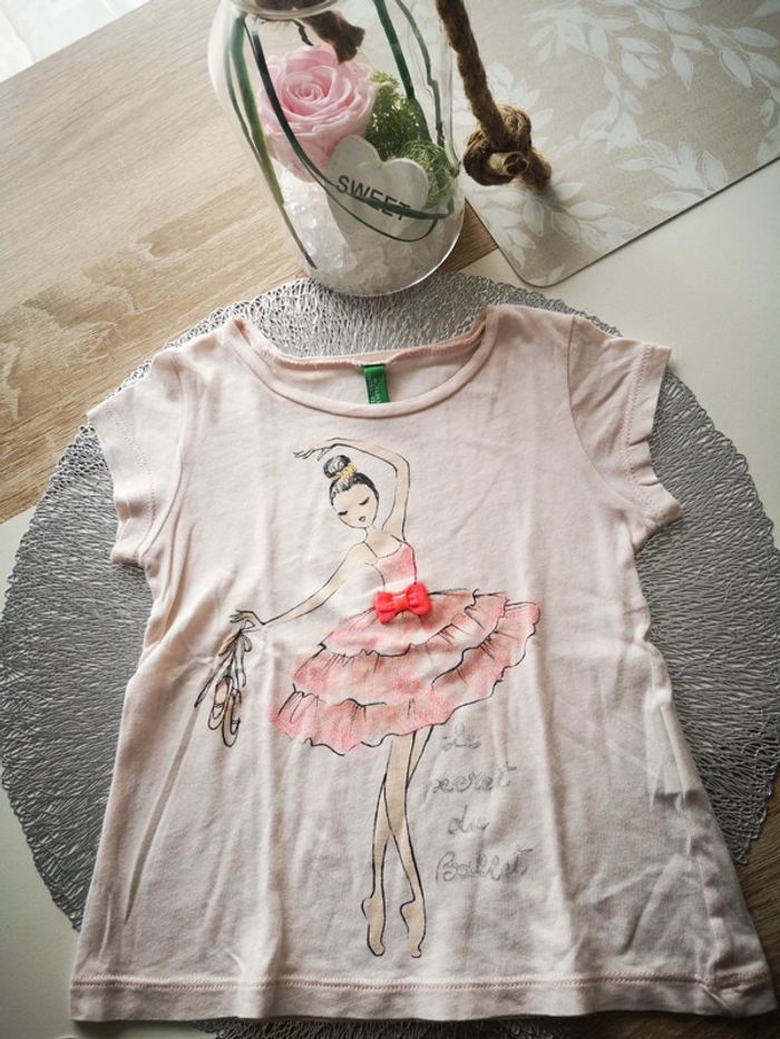 Très joli tee shirt Benetton danseuse Rose clair En très bon état Manches courtes. Réduction sur lot Envoie rapide et soigné A bientôt 😉