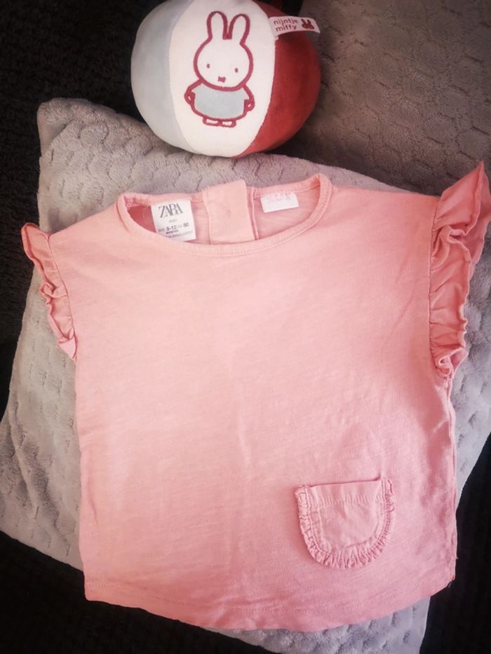 Tee shirt Zara rose En très bon état Taille 9/12 mois N'hésitez pas a faire un lot pour bénéficier de réduction