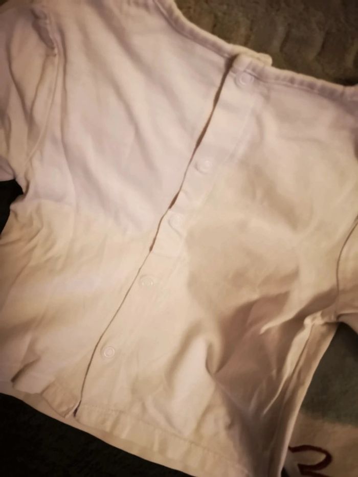 T shirt hello Kitty manches longues en très bon état Couleur blanc et fermeture par pressions dans le dos N'hésitez pas a regrouper les articles afin de bénéficier de réduction