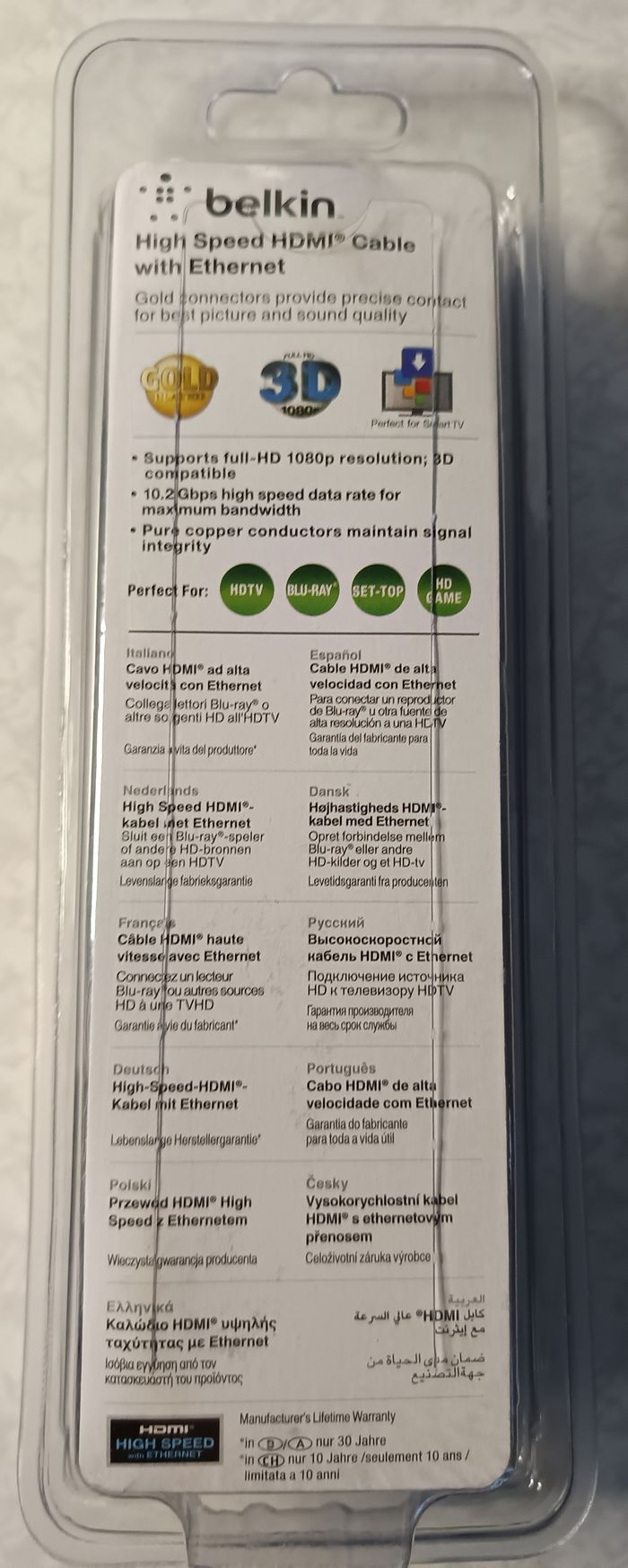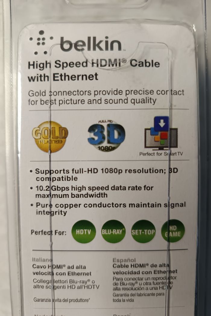 Cable Plaqué OR HDMI haute vitesse 10,2Gbps avec Ethernet BELKIN neuf 2 mètres - photo numéro 4