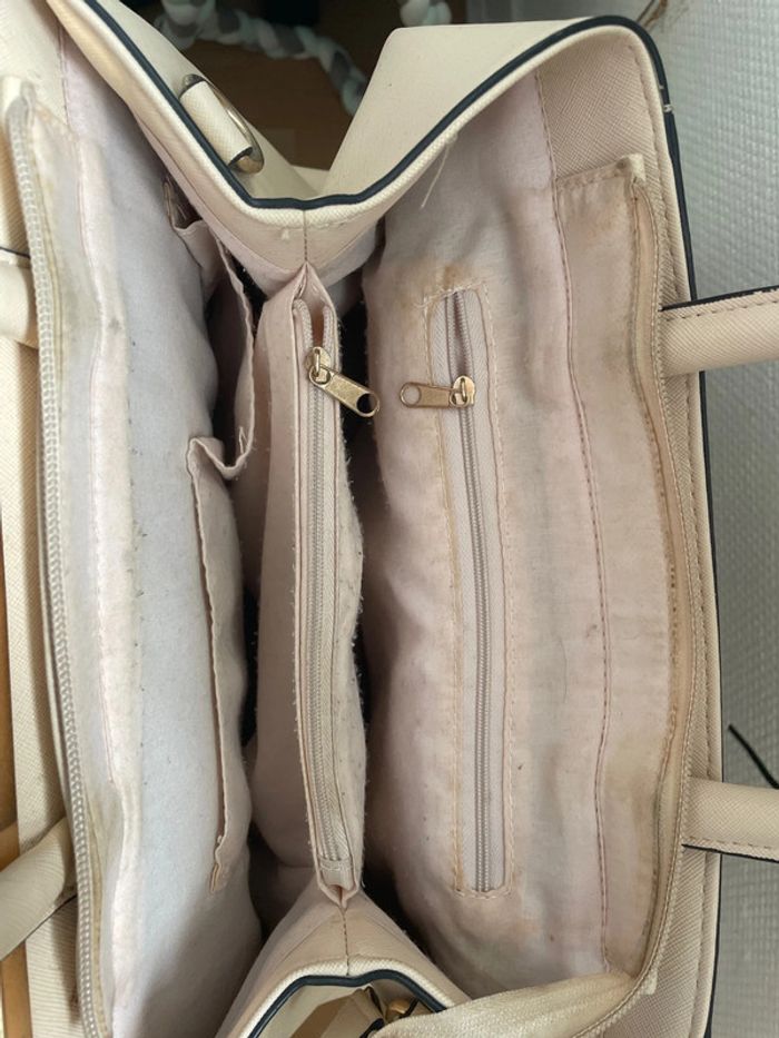 Extérieur en bon état, la poignée mériterait un coup de colle. L’intérieure est un peu usé.