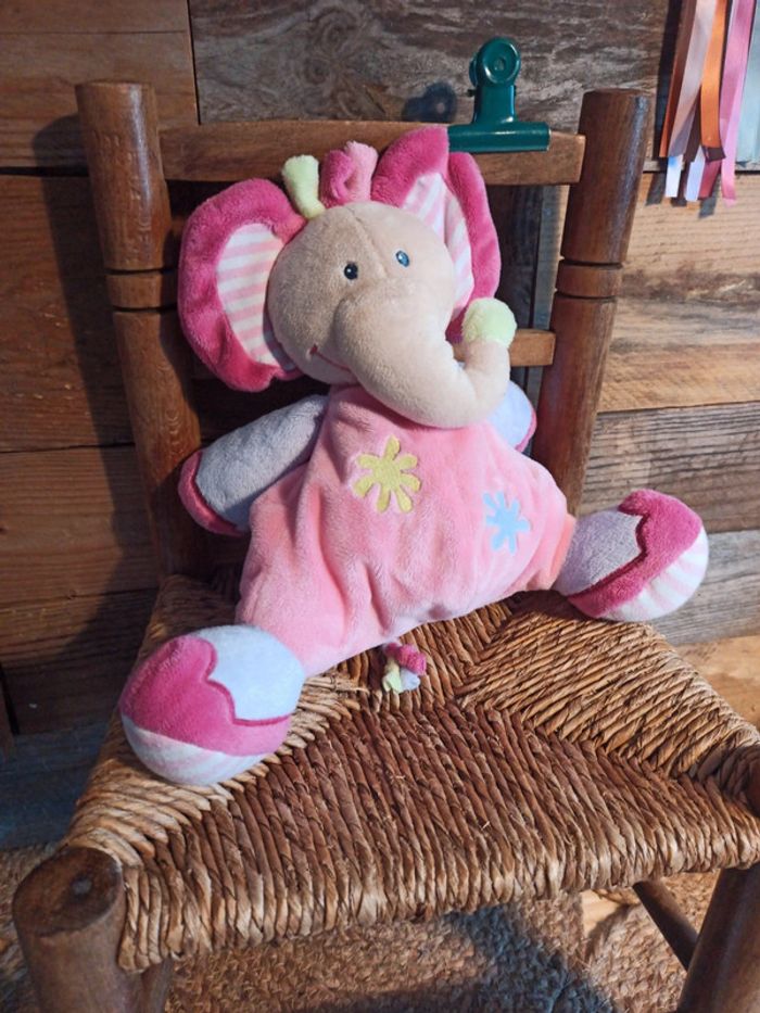 Peluche éléphant Nattou rose tbe - photo numéro 6