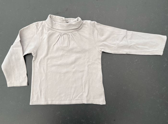 Tee-shirt à col roulé de couleur gris clair. Fermeture par boutons au dos. En très bon état, aucune tâche ni trou. 100% coton. Taille 2 ans, marque DPAM. Envoi rapide et soigné, réduction automatique dès 2 articles sélectionnés. Mes autres articles de la même taille ici: #24moisfilleugolola #fille2ans #teeshirt2ansfille #teeshirtcolroule2ans