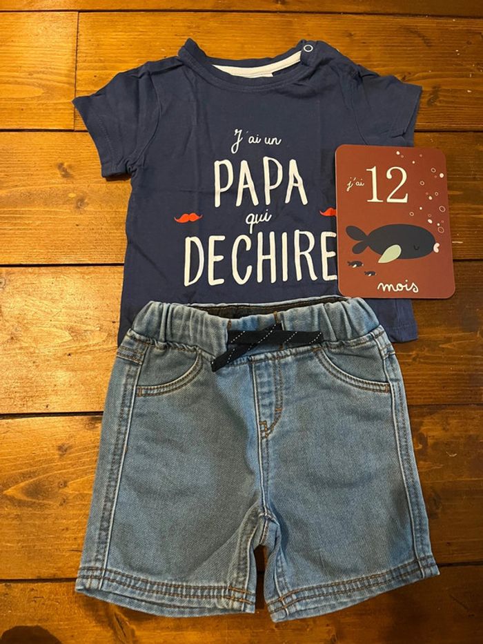 Short jean+ tee shirt taille 12 mois - photo numéro 1