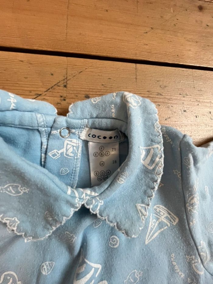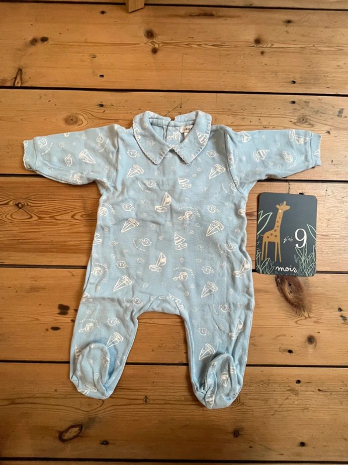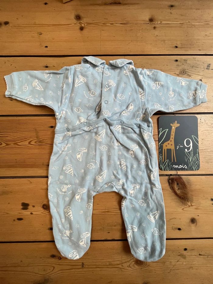 Pyjama une pièce taille 9 mois 71 cm Bien porté, « peluches » visiblent sur photos Couleur bleu blanc Marque cocoon