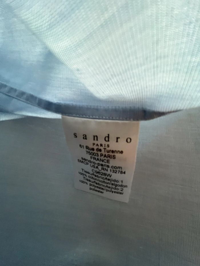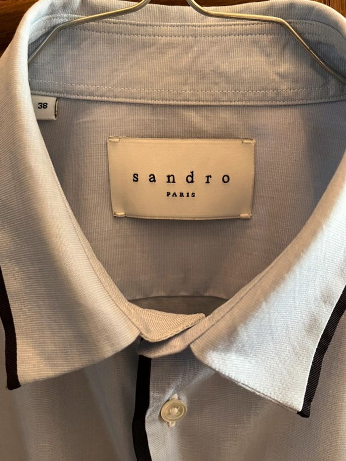 Taille 38 correspond taille s Portée une fois, parfait état Chemise manches longues bleu clair bleu ciel avec liseré bleu marine Marque Sandro