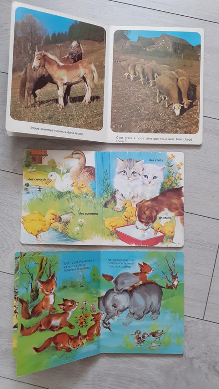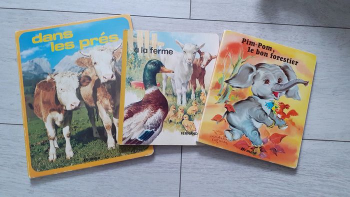 Lot de 3 livres anciens cartonnés pour enfant sur le thème des animaux dans les prés à la ferme et éléphant éditions Hemma #jenni1428_livres_cd_dvd_enfant