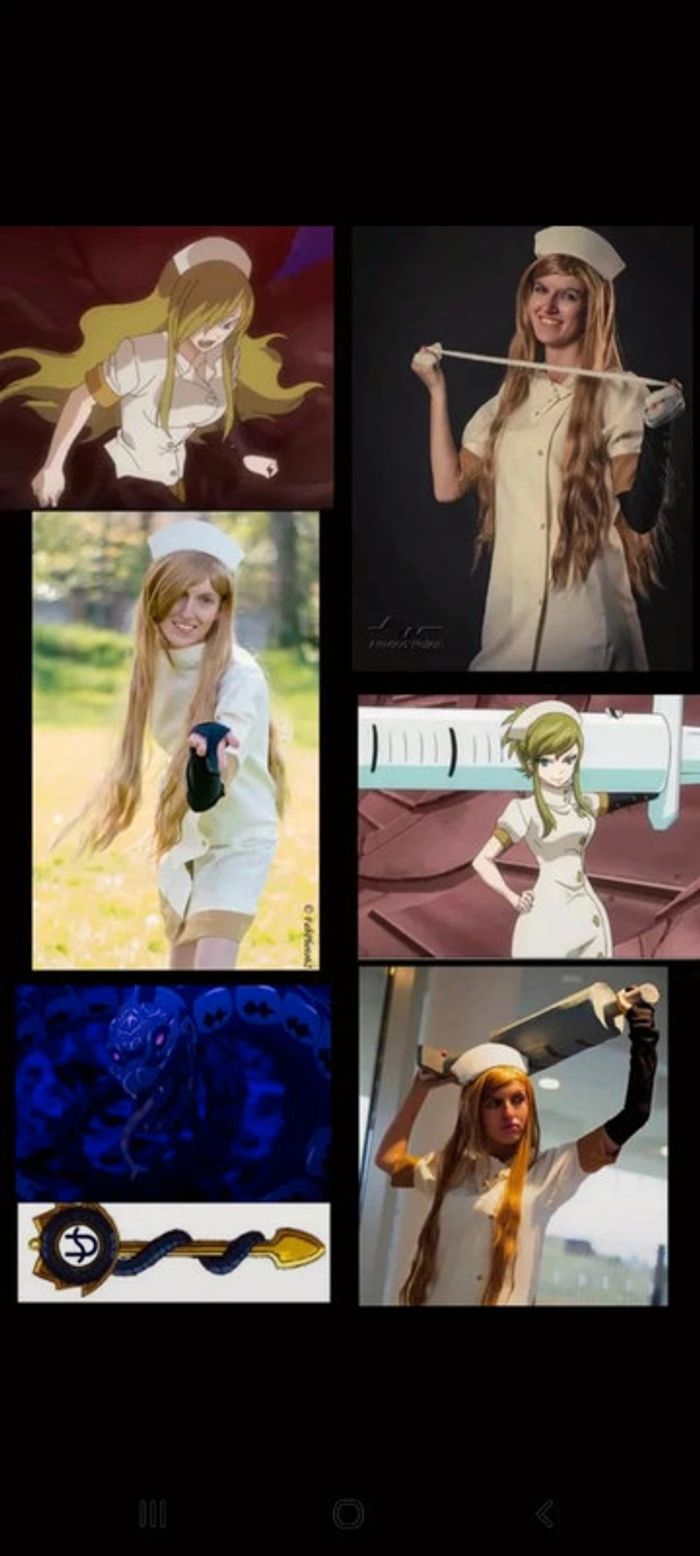 Cosplay du 13eme esprit stellaire dans Fairy Tail: Ophiuchus Le cosplay a été fait main. Taille 36/38 Il comprend: - la tunique - Le gant - Le badge - Le calot (à glisser dans un serre-tête) Ne comprends pas: - la perruque - les chaussures - la seringue #fairytail #fairytailmanga #fairytailcosplay #Ophiuchus #cosplayfaitmain #deguisementinfirmiere #déguisement