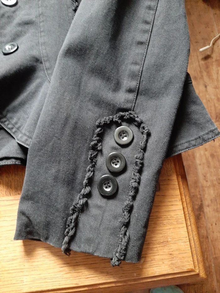 jolie petite veste noire en coton, doublée "satin", marque A.C.B, taille 3, fermée par 2 gros boutons