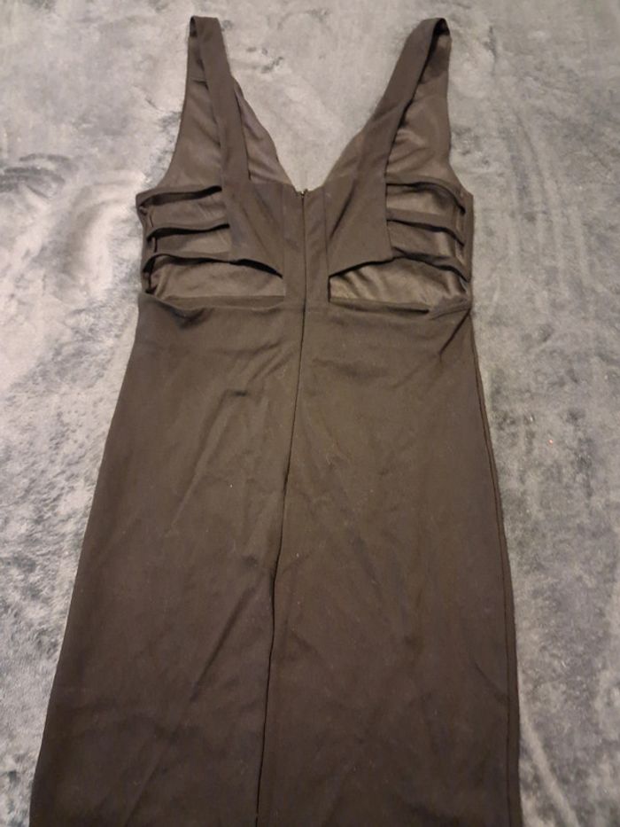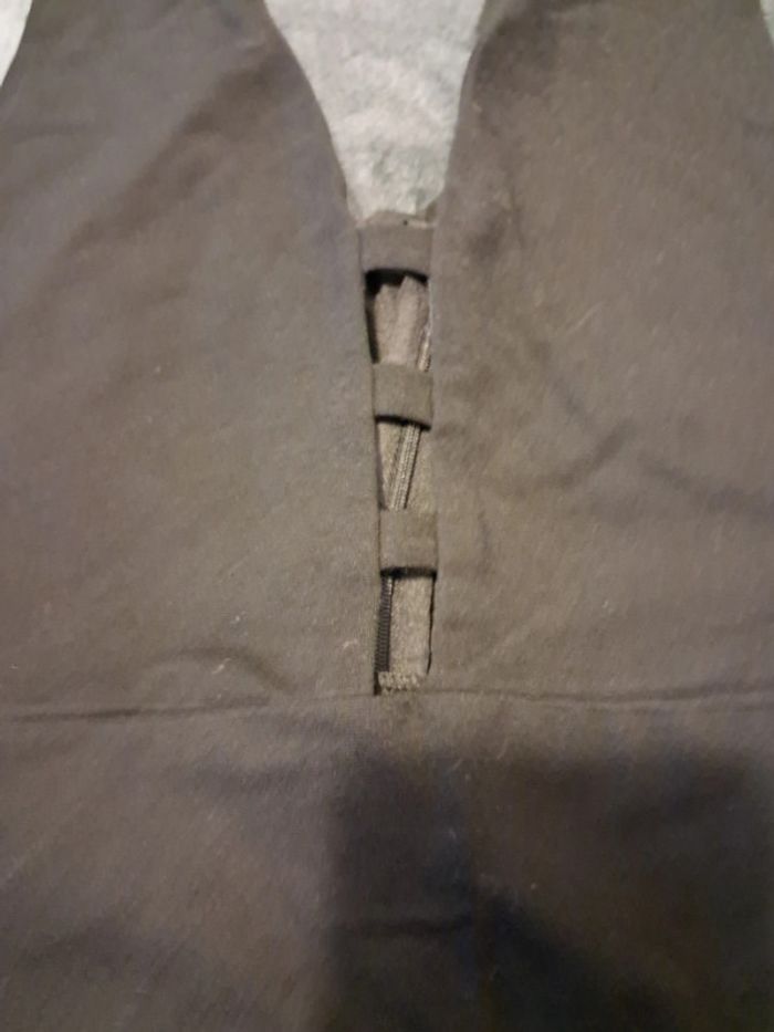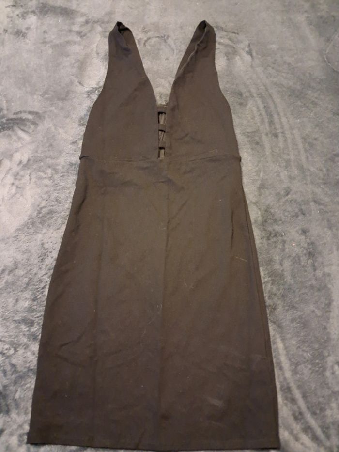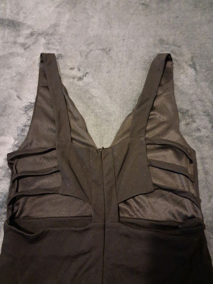 robe courte, zip dans le dos, petites bretelles, ouverture dans le dos et sur le devant, couleur noire, taille XL, marque Tally Weijl, portée 1 fois