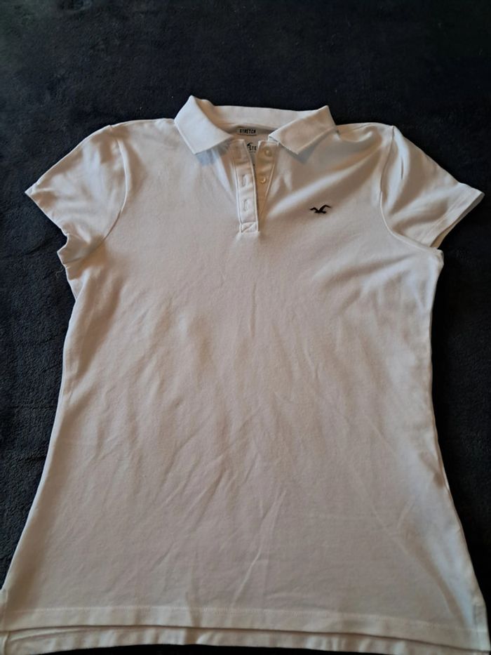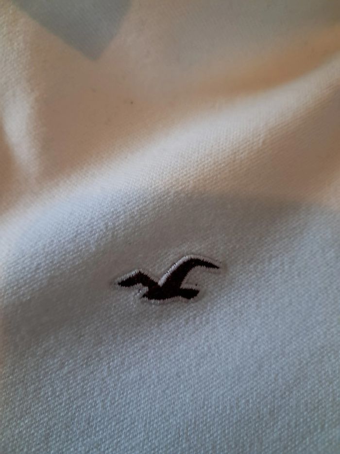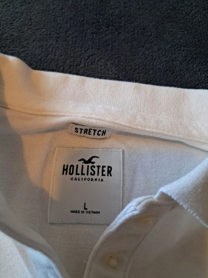 polo manches courtes, blanc, sérigraphie poitrine, taille L, marque Hollister, jamais porté