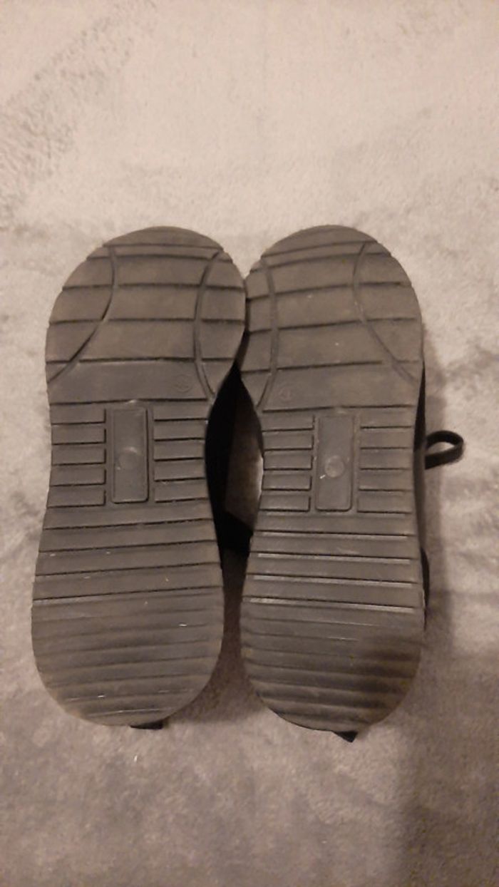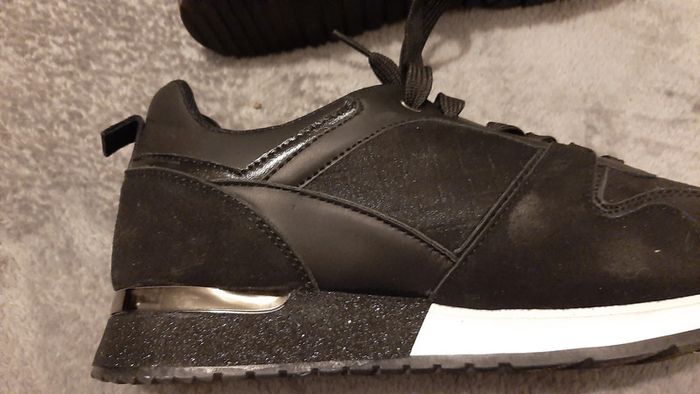 tennis basket originales, noir avec semelle épaisse, partie blanche, légèrement pailletées + bande moirée, taille 41, portées 1 fois