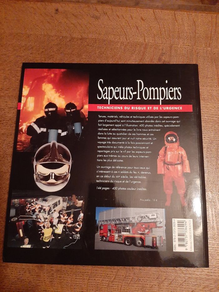 magnifique livre carré sur les sapeurs pompiers, tenues, matériels, véhicules et techniques utilisés, 450 photos, 144 pages, couverture souple
