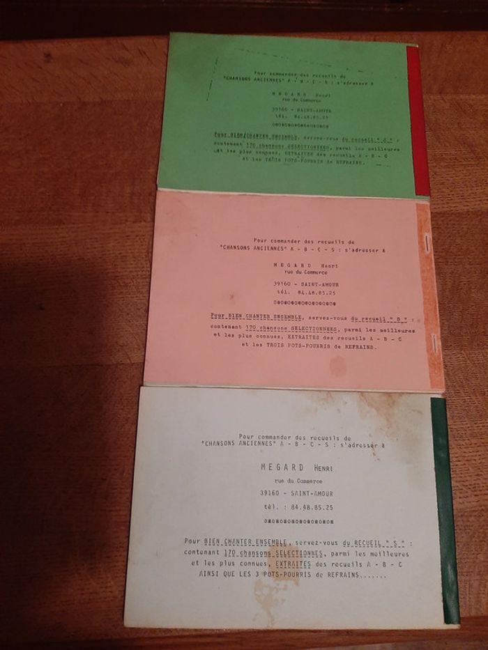 3 fascicules tapés à la machine à écrire et reliés, énorme catalogue de chansons ancienne (170 chansons par livret), rares et anciens