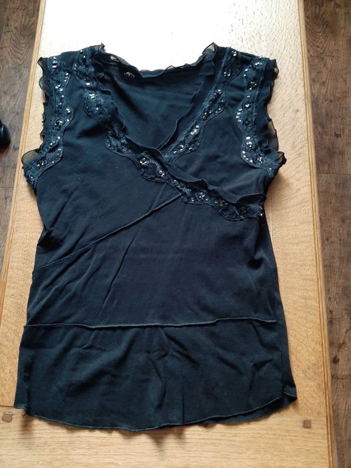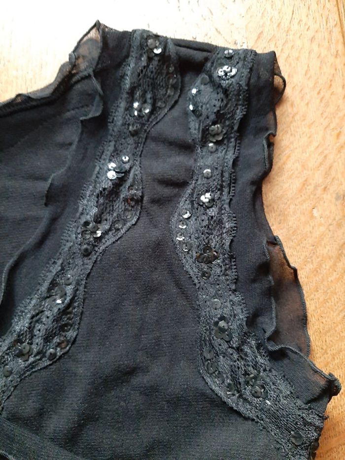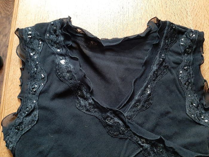 débardeur noir avec broderie et sequins, col V, taille 3, 100% polyamide