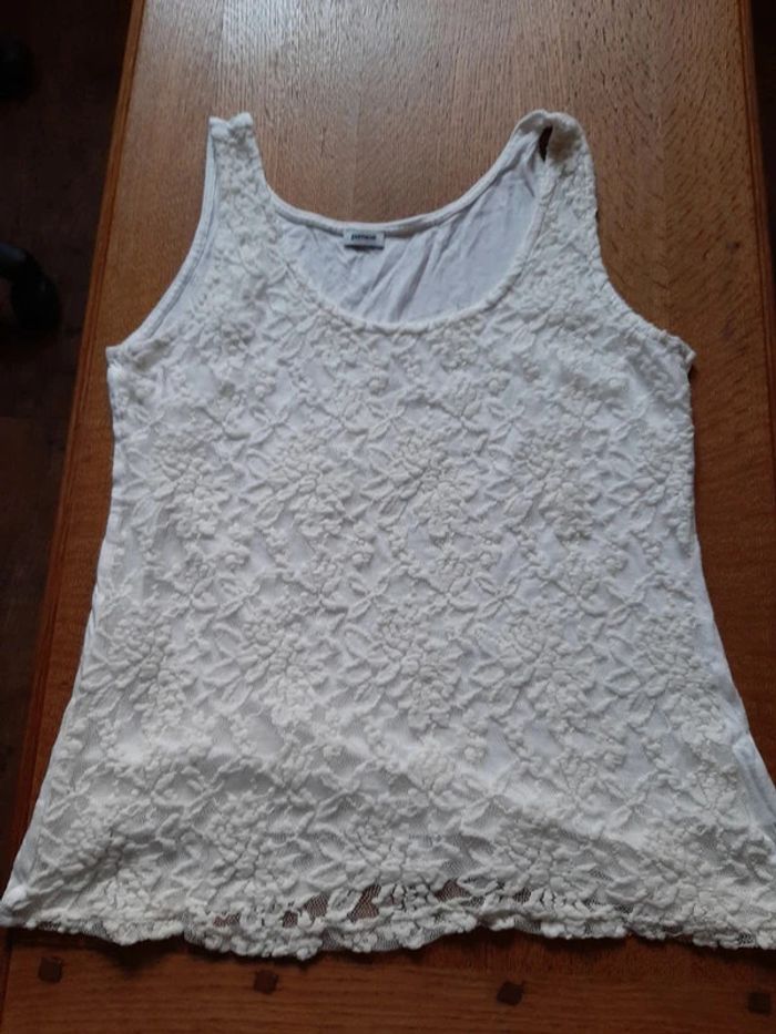débardeur crème doublé sur le devant en broderie, taille L, marque Pimkie
