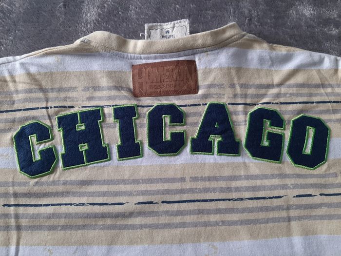 tee shirt Baseball ligue Chicago, flocage sur le devant, ecussons sur la manche droite et haut du dos, 100% coton, taille M mais grand, marque Fiori Fashion