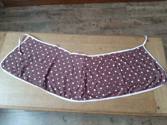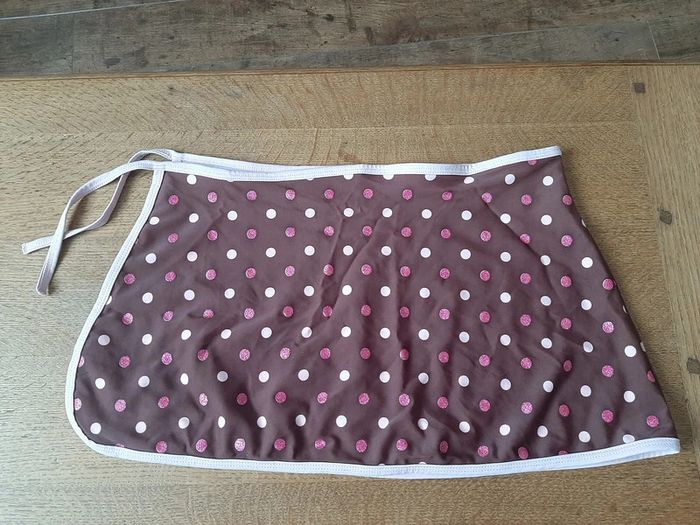 jupette paréo, idéal pour rentrer de la plage ou de la piscine, 85% polyamide, 15% elastan, couleur fond lie de vin, bords et cordons rose, pois rose et fuschias (à paillettes), taille 36/38
