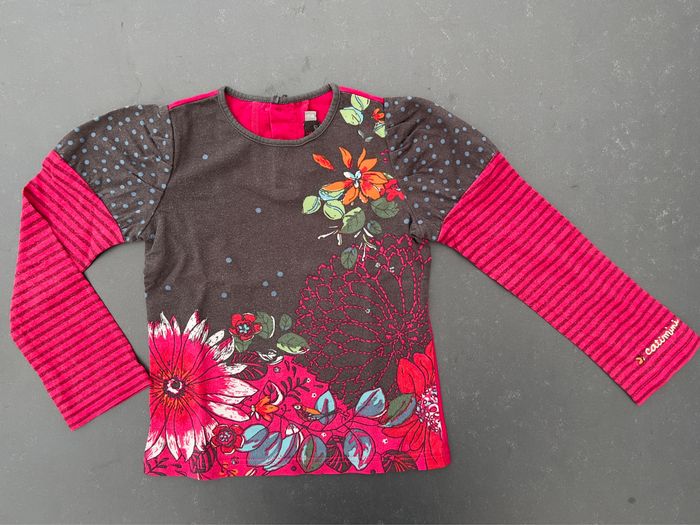 Tee-shirt à manches longues de couleur rose et marron. Fermeture par boutons au dos. En excellent état, porté 2 fois. Aucune tâche ni trou. En coton. Taille 2 ans, marque Catimini. Envoi rapide et soigné, réduction automatique dès 2 articles sélectionnés. Mes autres ventes ici: #24moisfilleugolola #24moisfille #fille2ans #2ansfille #teeshirt2ansfille #catimini #catimini2ansfille