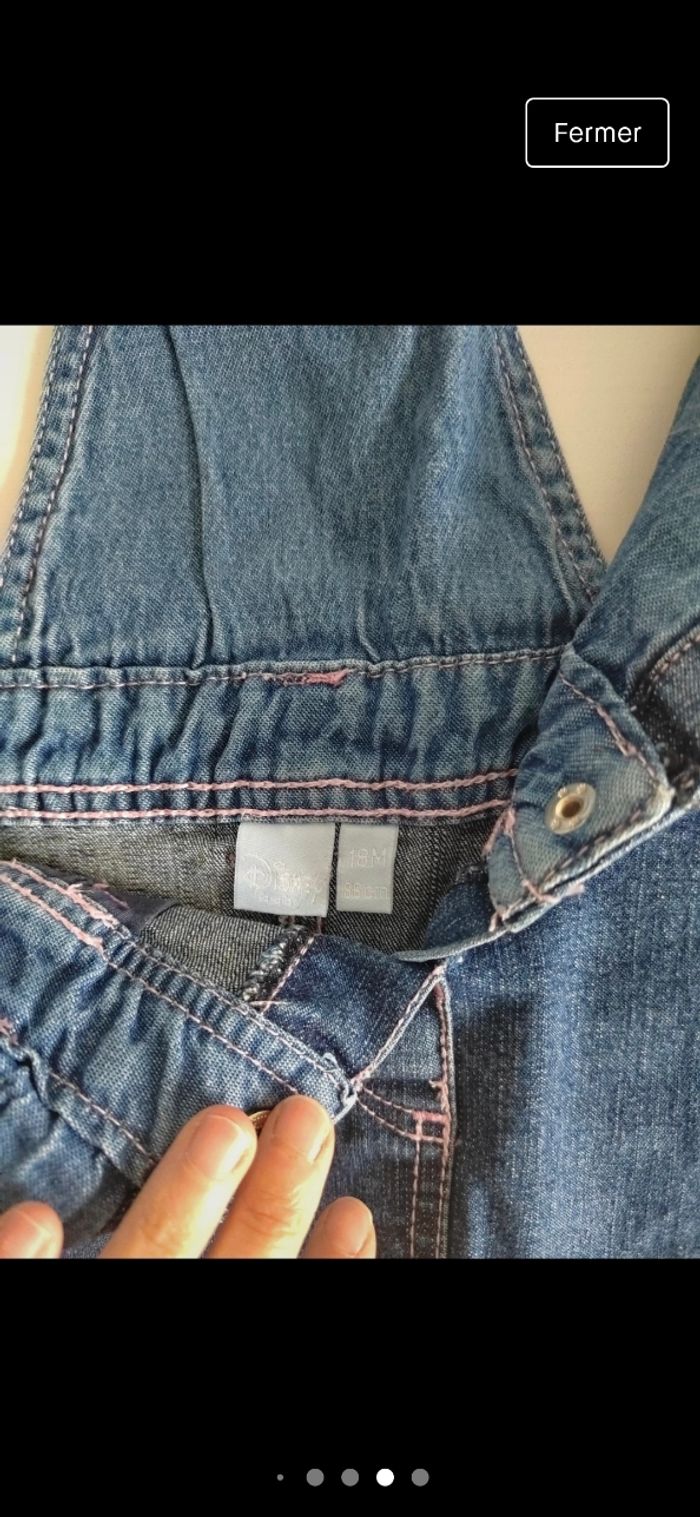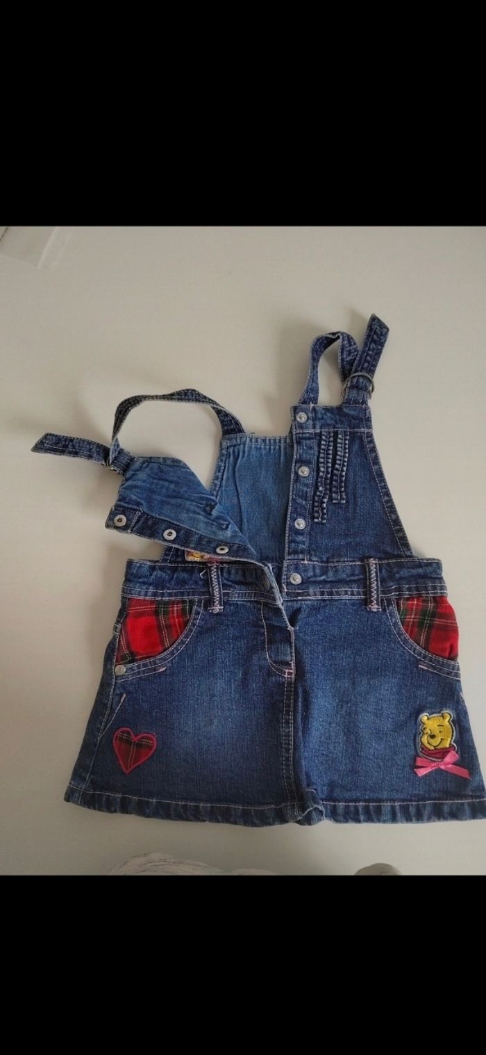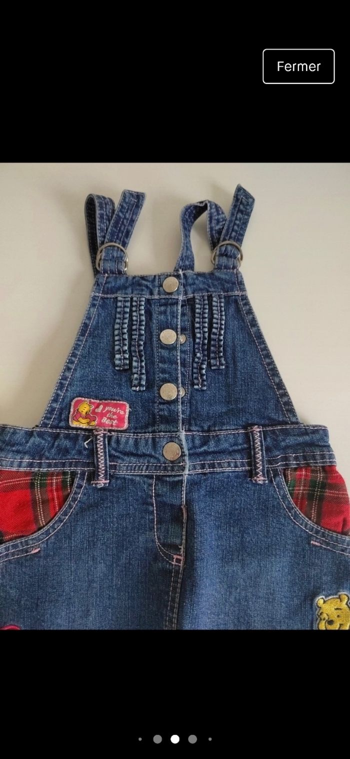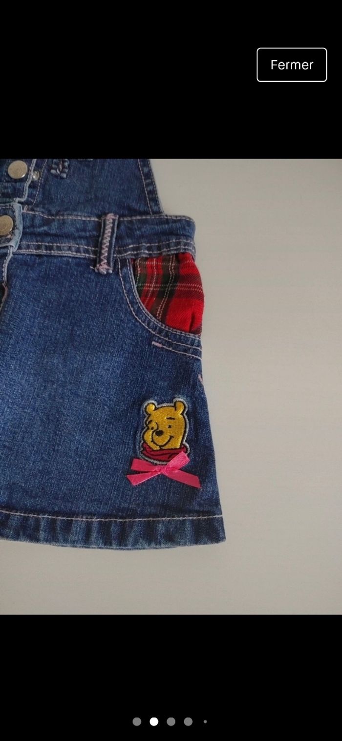 Robe salopette en jeans bébé fille. De ma marque Disney avec logo Winnie. Bouton pression sur le devant pour un enfilage plus simple. Bretelle réglable. Taille 18 mois