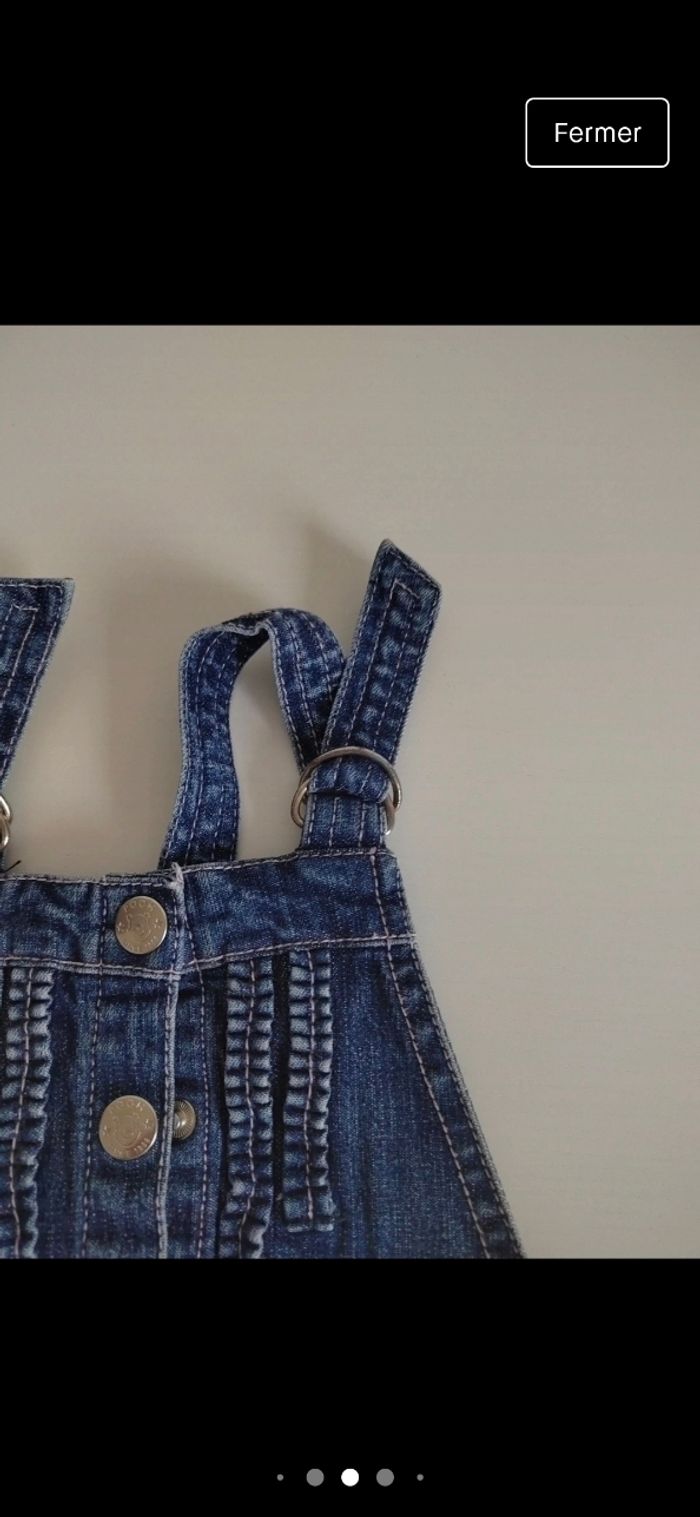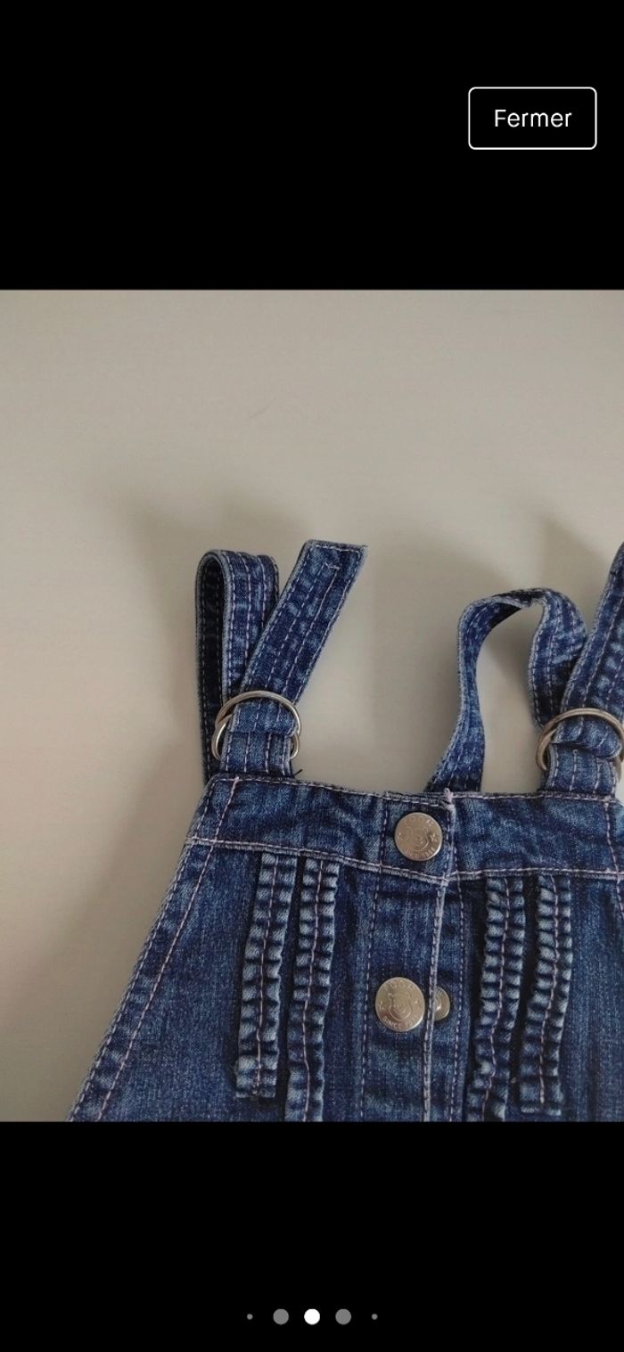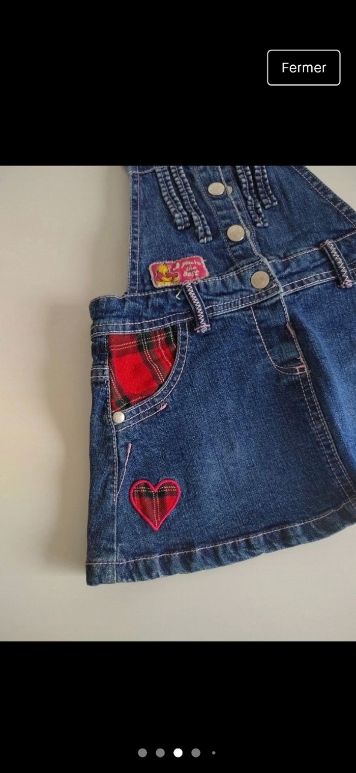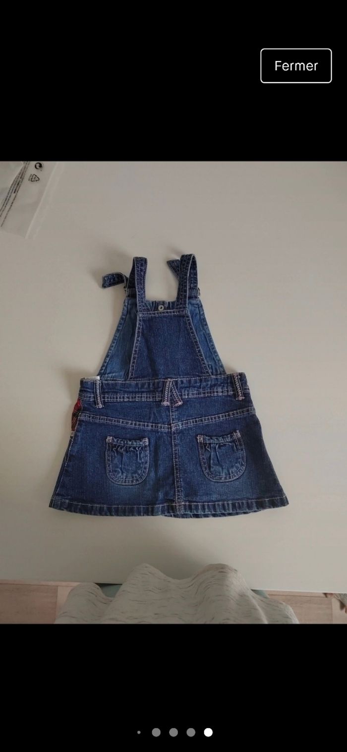 Robe salopette en jeans bébé fille. De ma marque Disney avec logo Winnie. Bouton pression sur le devant pour un enfilage plus simple. Bretelle réglable. Taille 18 mois