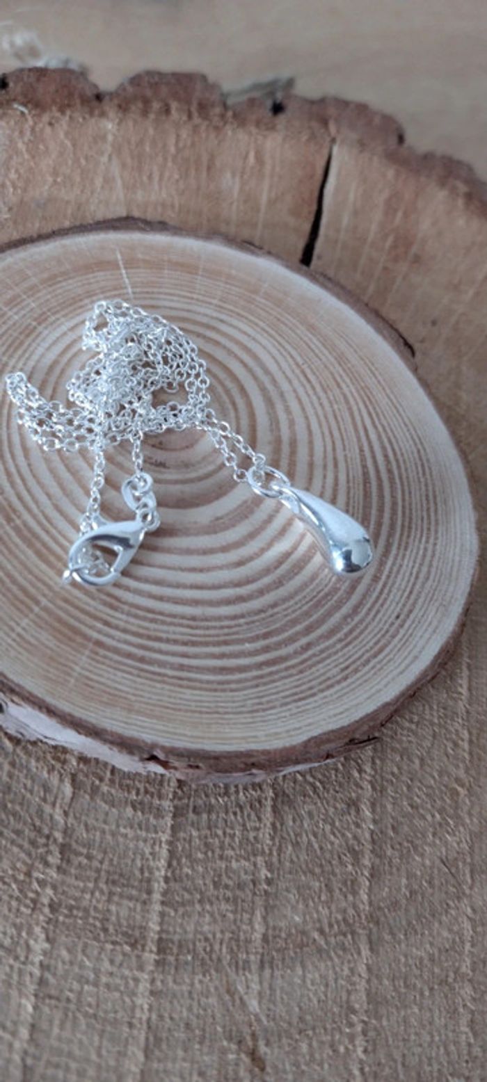 Collier goutte argent 925, longueur 45cm, hauteur goutte 1,5cm