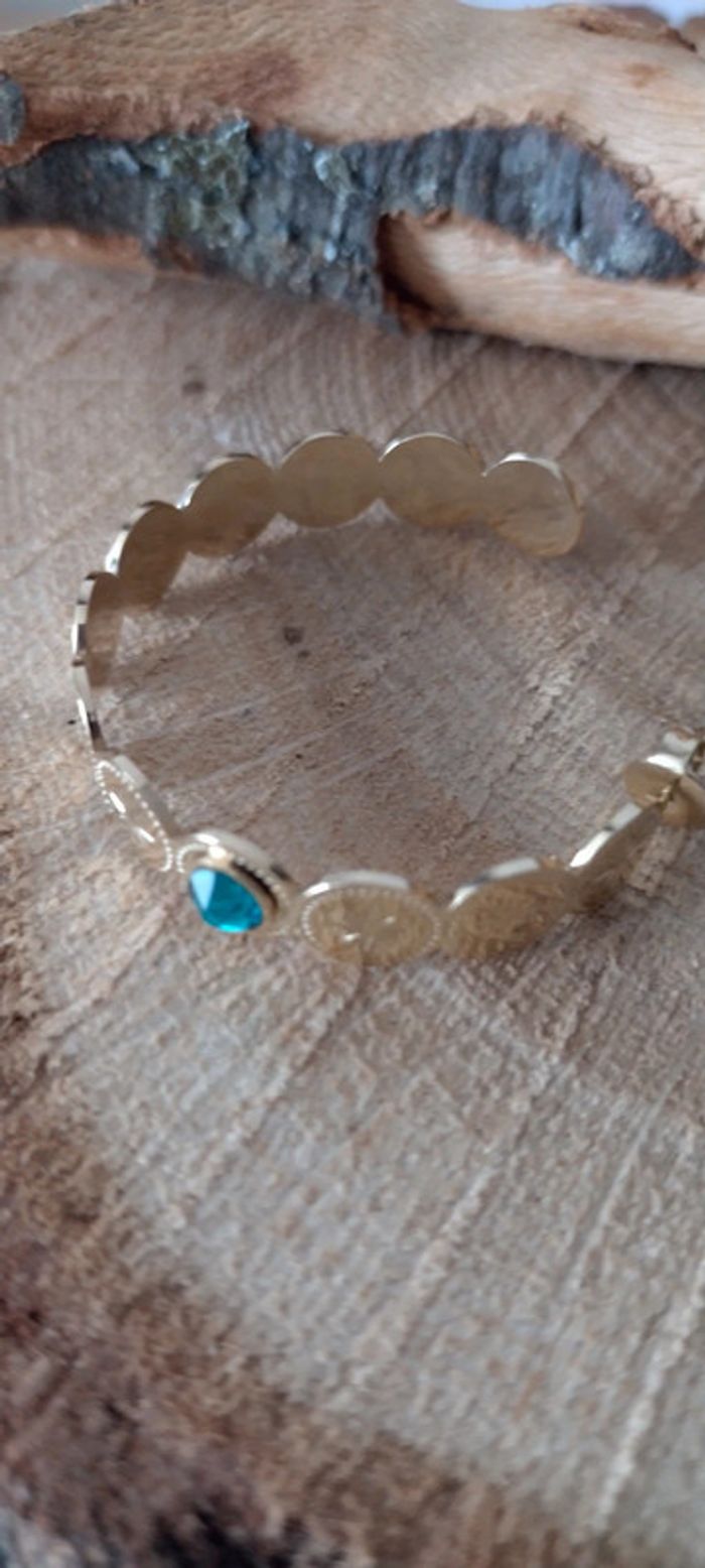 Boucles d'oreilles créoles avec cristal bleu lagon, diamètre 3,5cm, acier inoxydable, marque Bohm