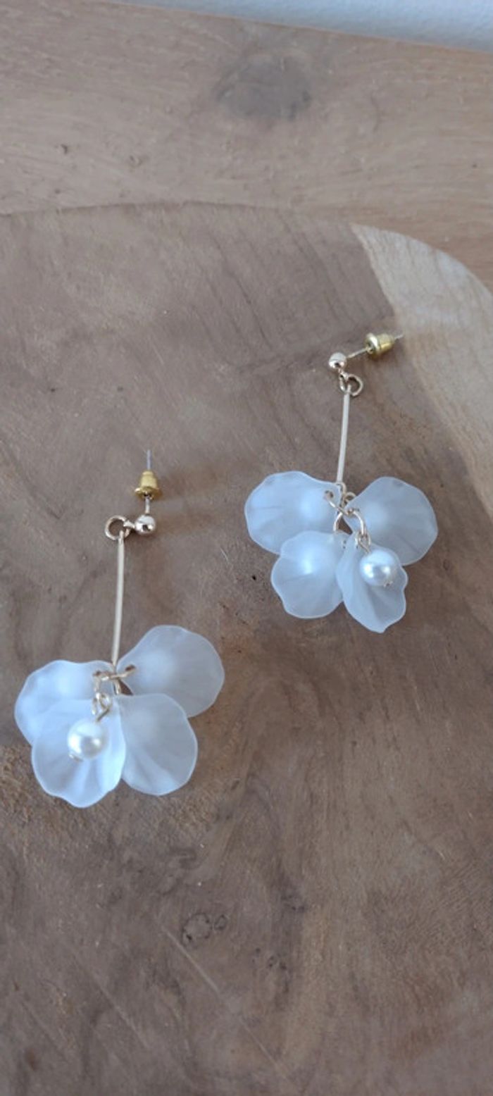Boucles d'oreilles fleurs et perles - photo numéro 3