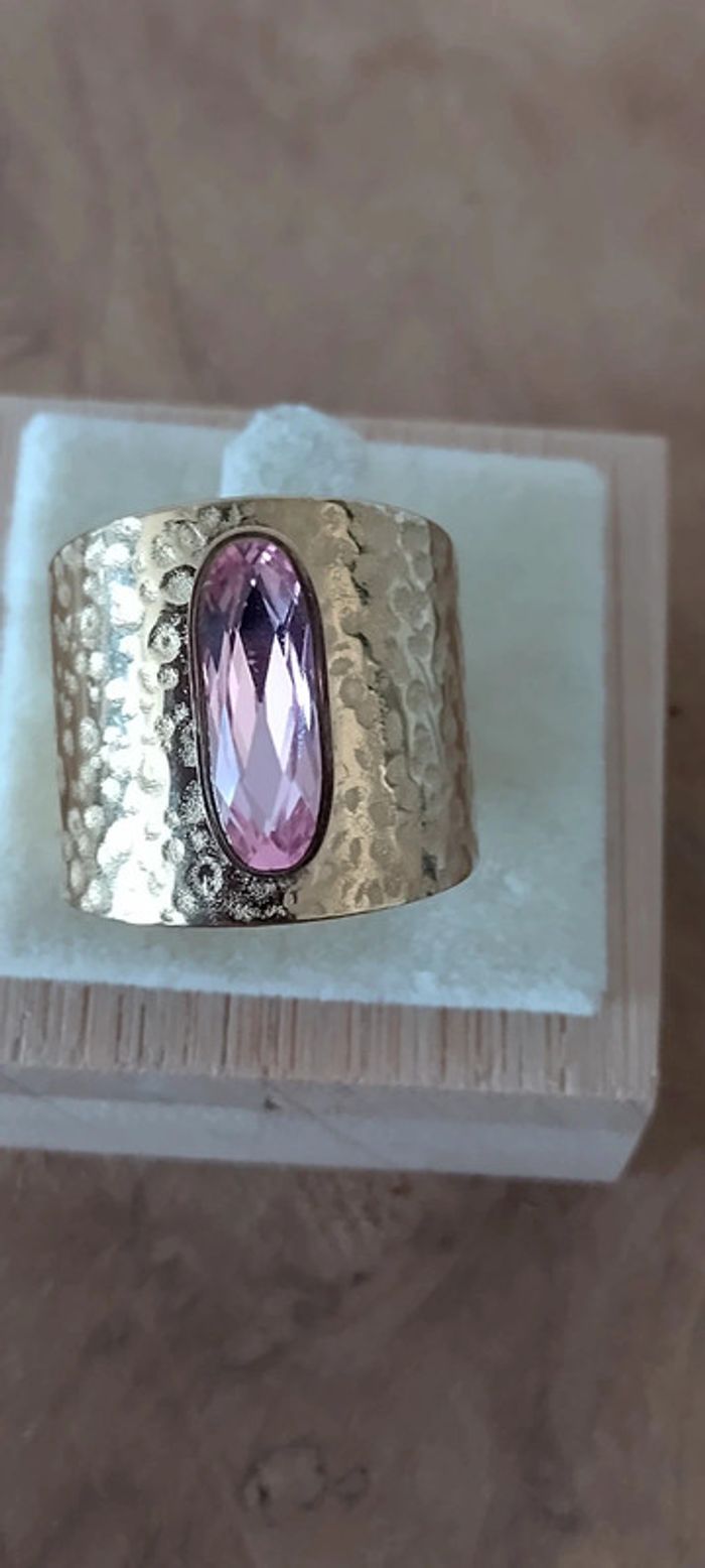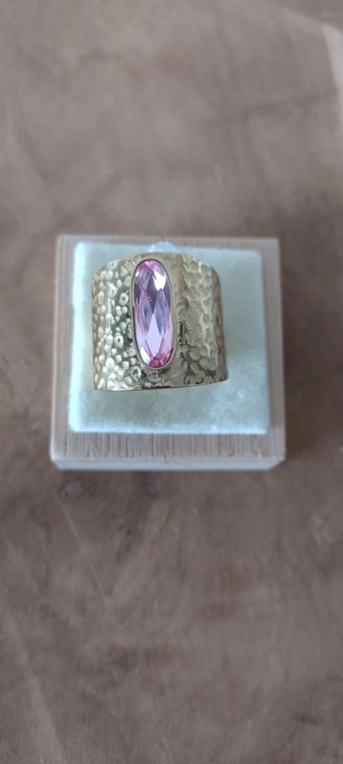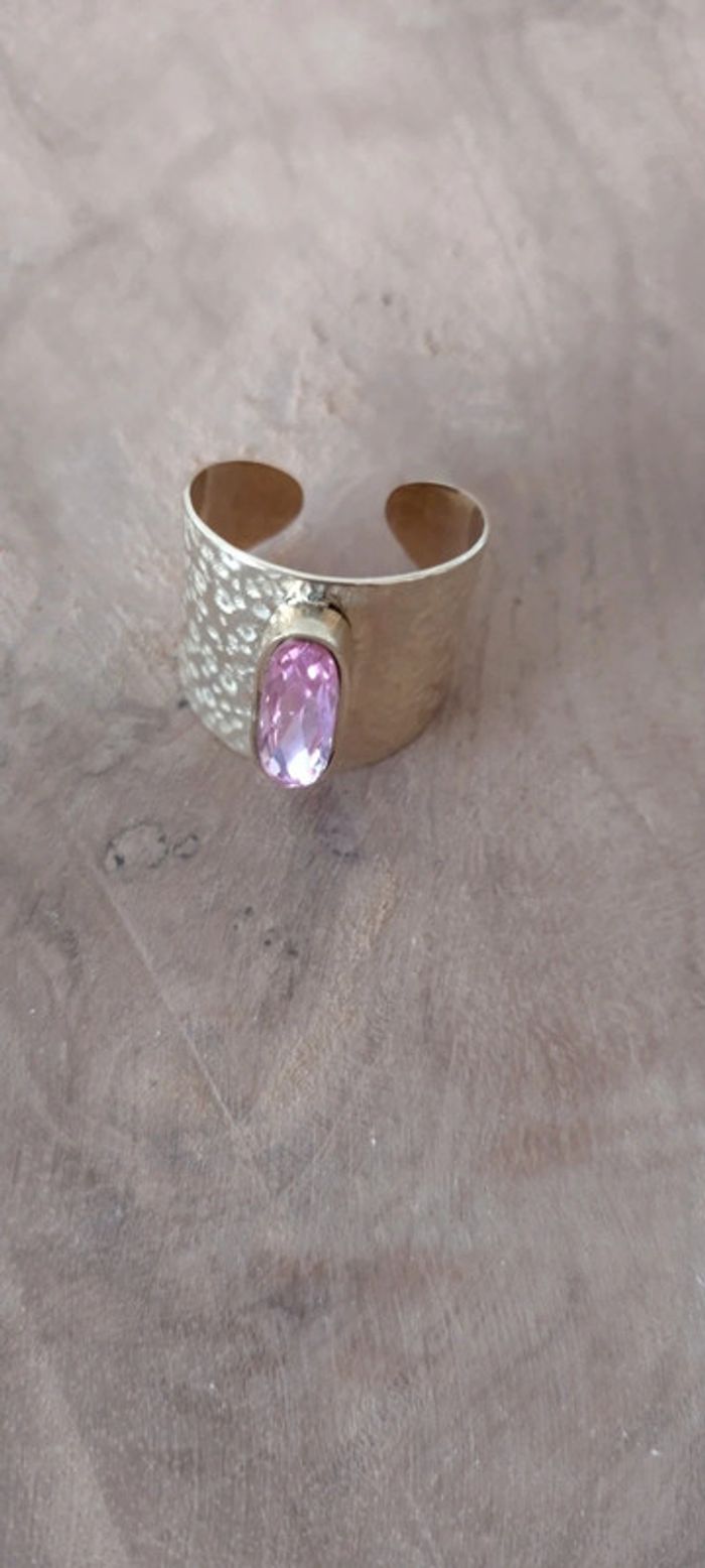 Bague Bohm cristal rose, largeur 2cm, longueur cristal 1,5cm réglable, acier inoxydable