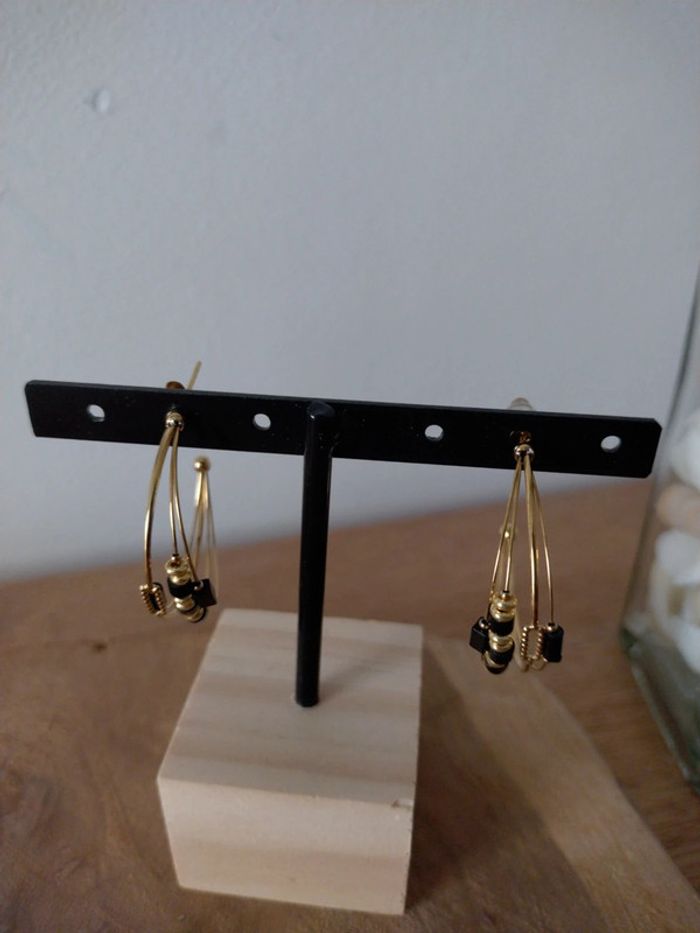 Boucles d'oreilles Bohm créoles onyx - photo numéro 3