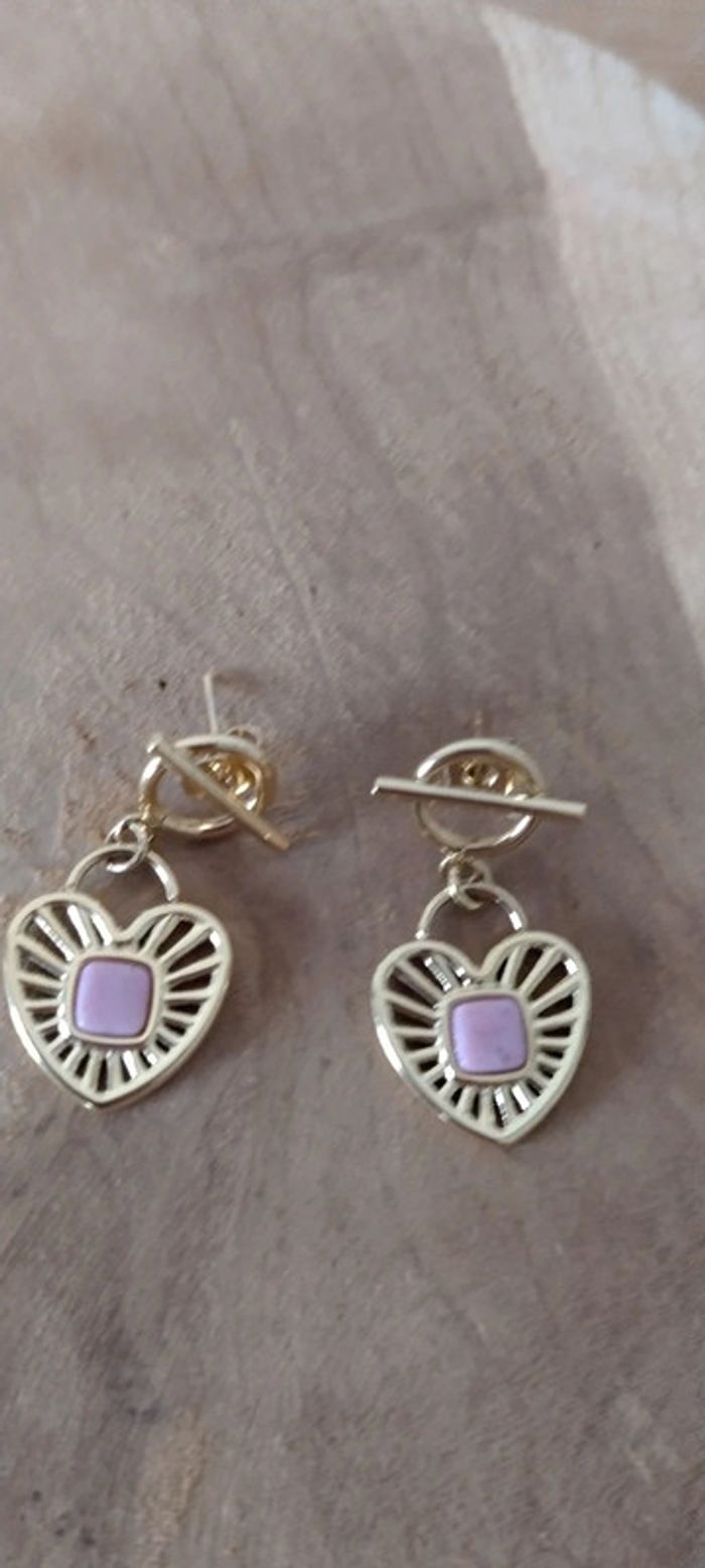 Boucles d'oreilles Bohm coeur rhodonite - photo numéro 2