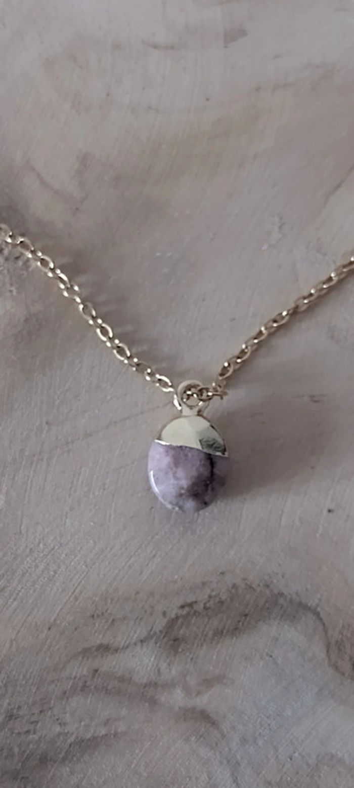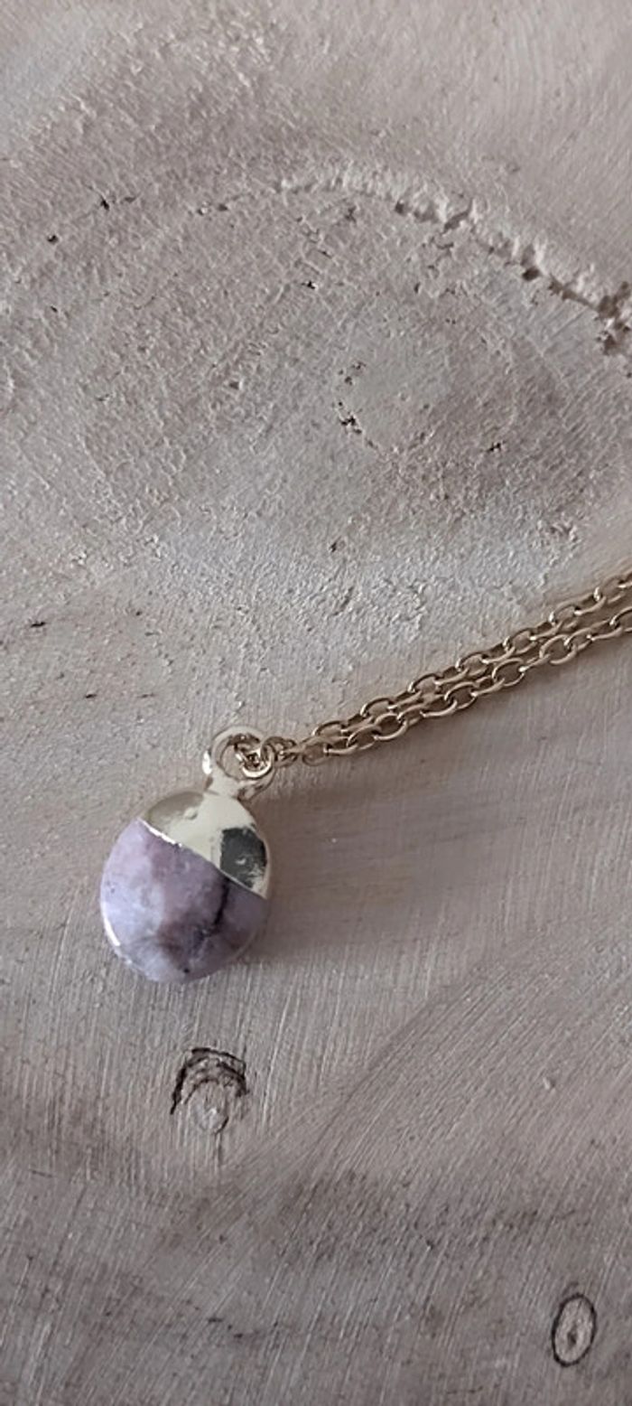 Collier pendentif rhodonite, chaîne acier inoxydable 44cm, pendentif 1,5cm, taille de la pierre :1cm
