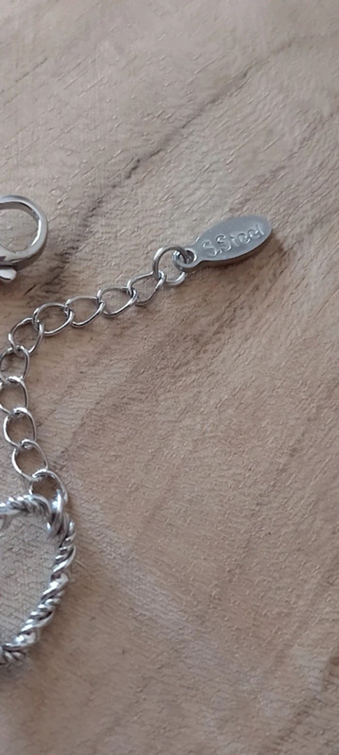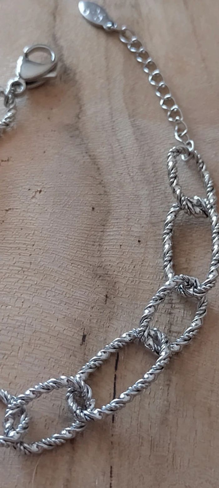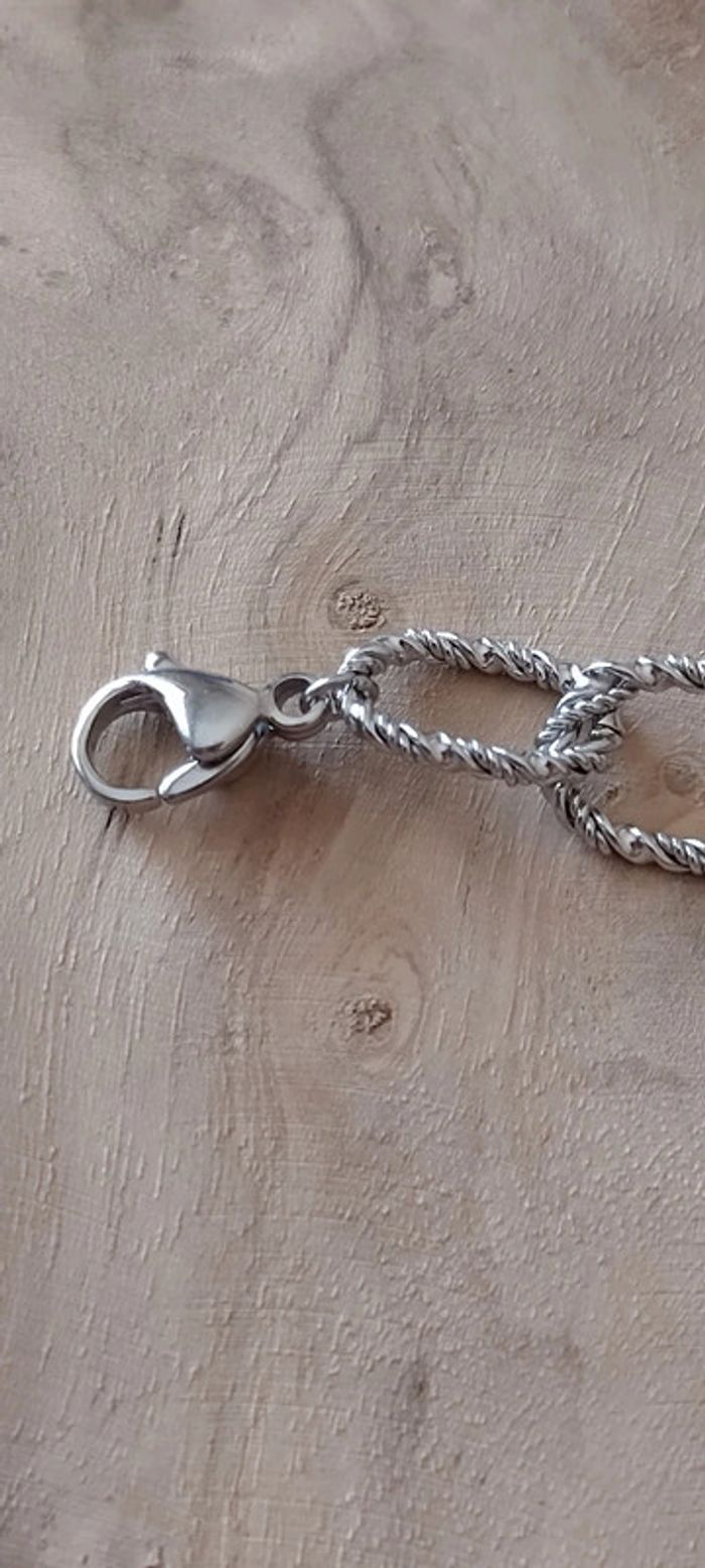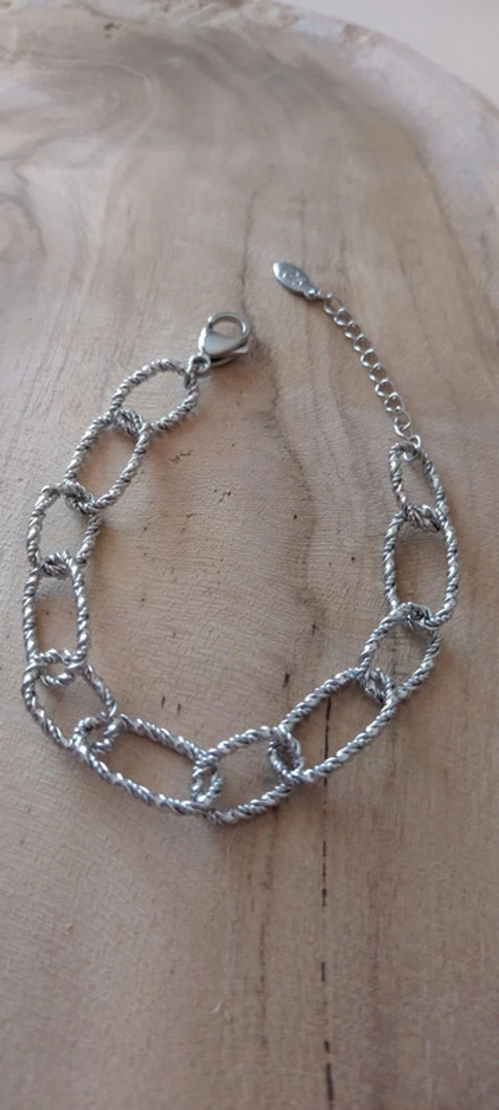 Bracelet gourmette grosse maille torsadée acier inoxydable argenté, 16+3cm, état impeccable
