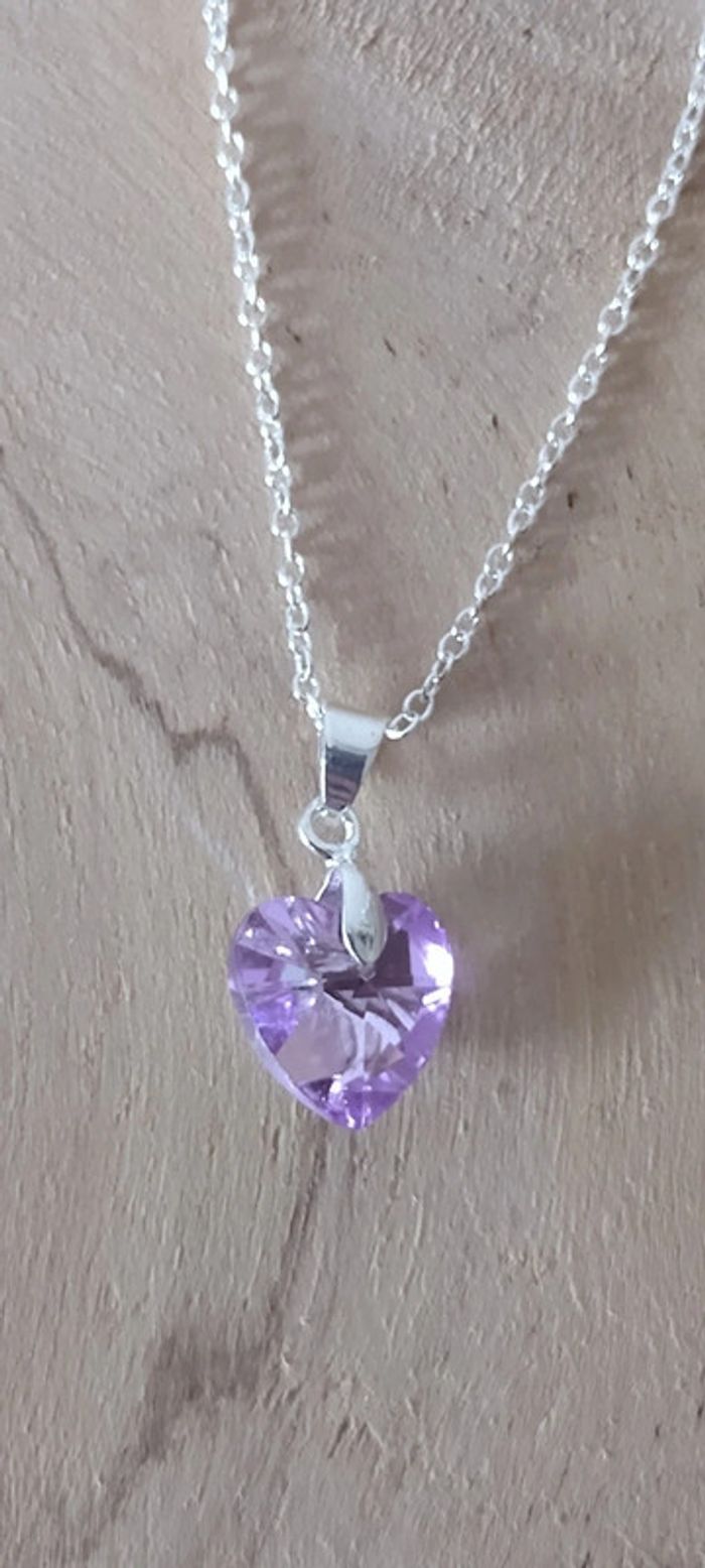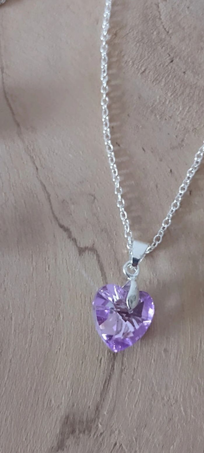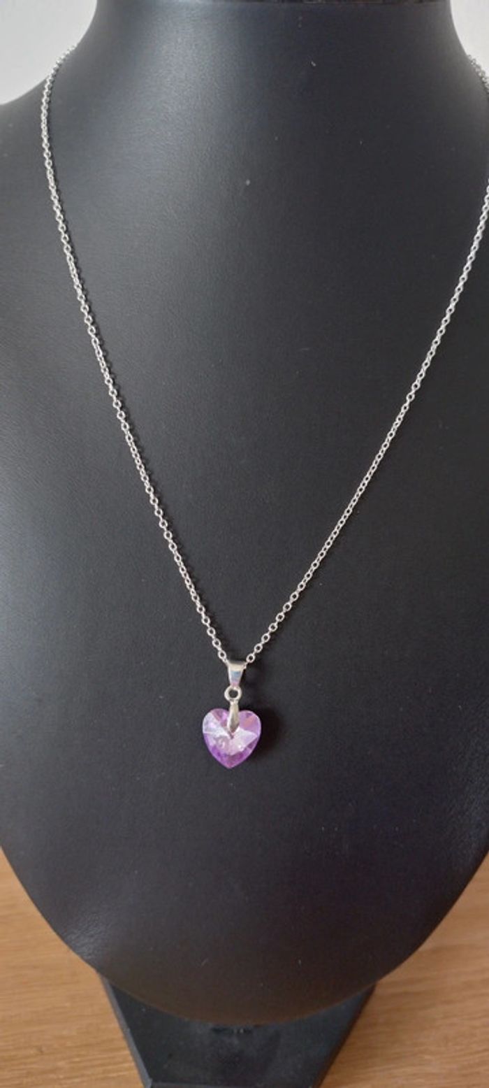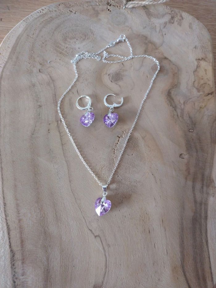 Boucles d'oreilles et collier argent 925, coeur rose, chaîne 45 cm, non noircie, parure jamais portée