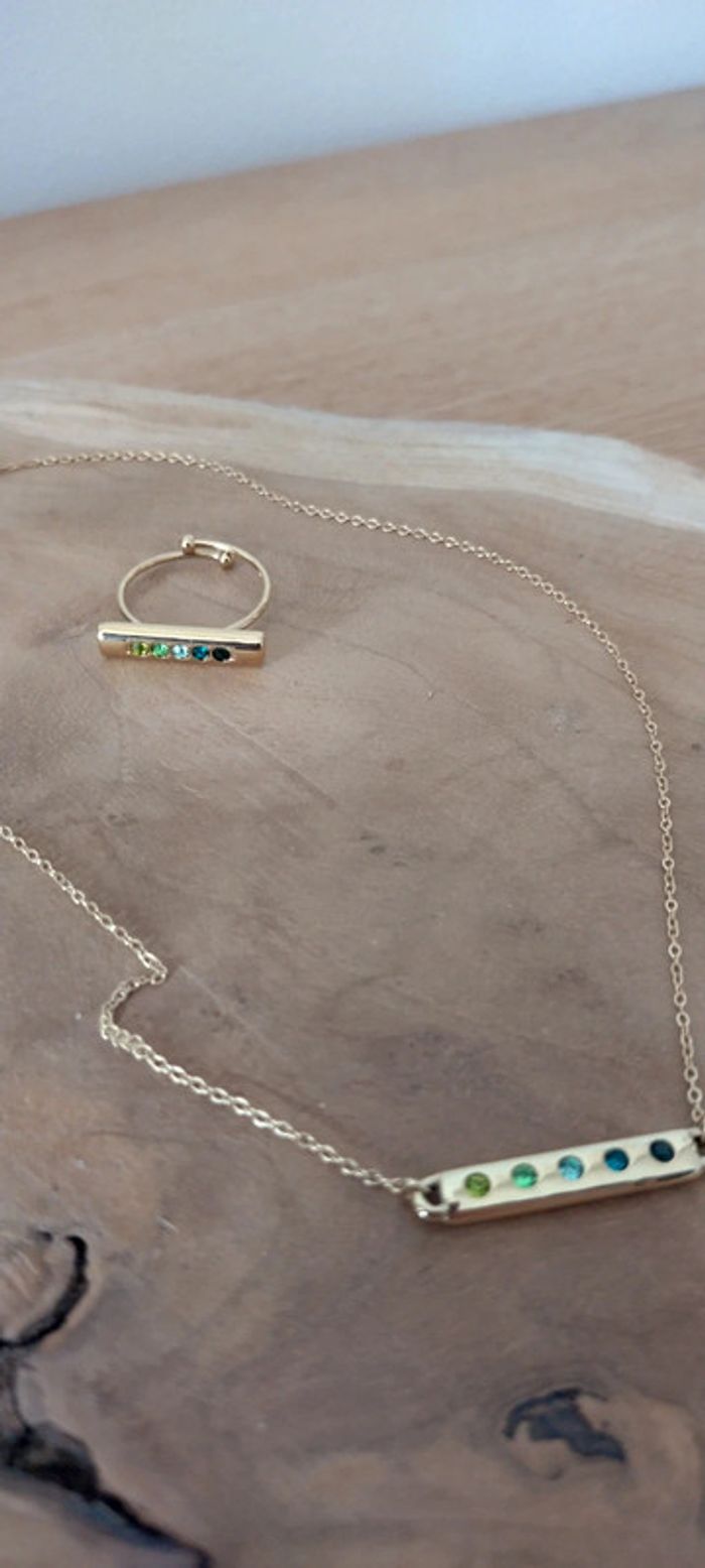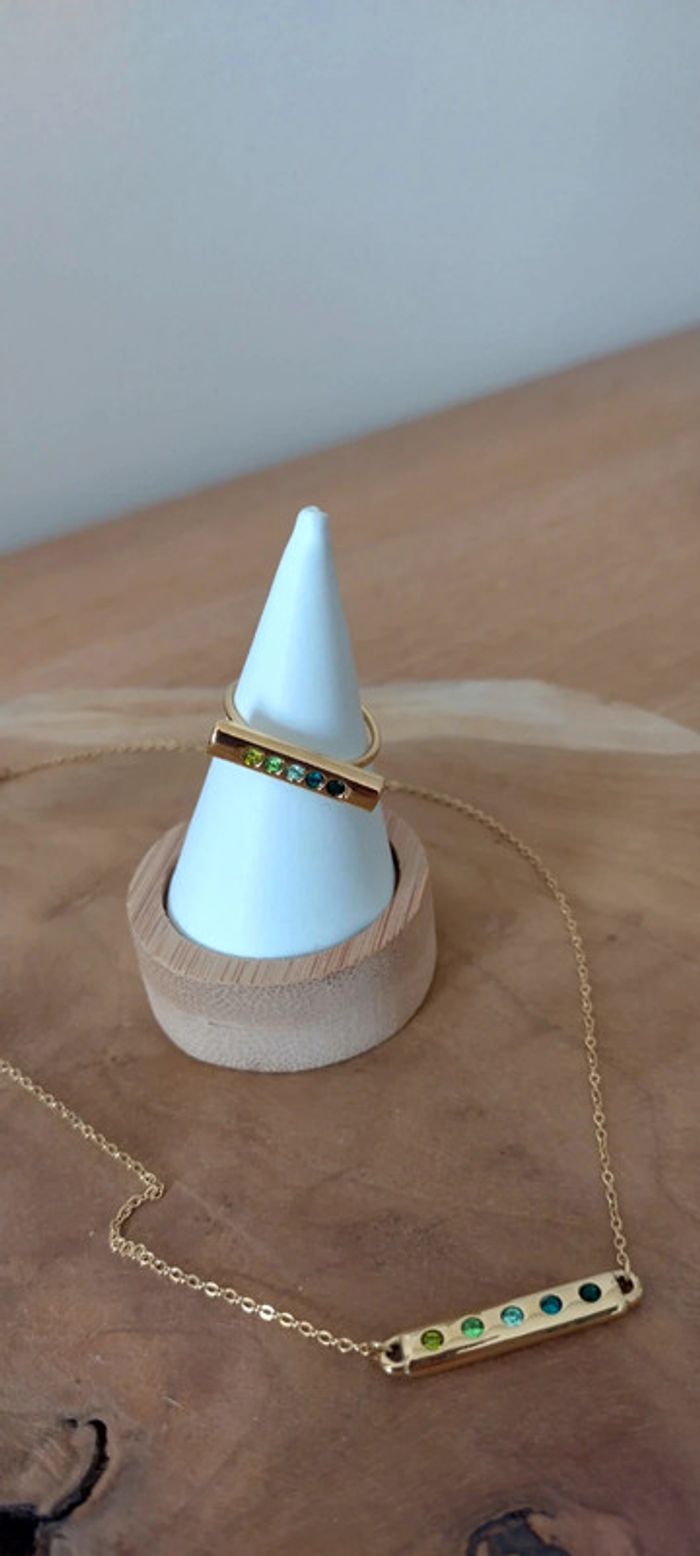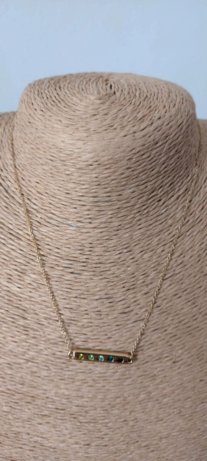 Collier Bohm acier inoxydable doré et oxyde de zirconium vert, chaîne 37+7cm