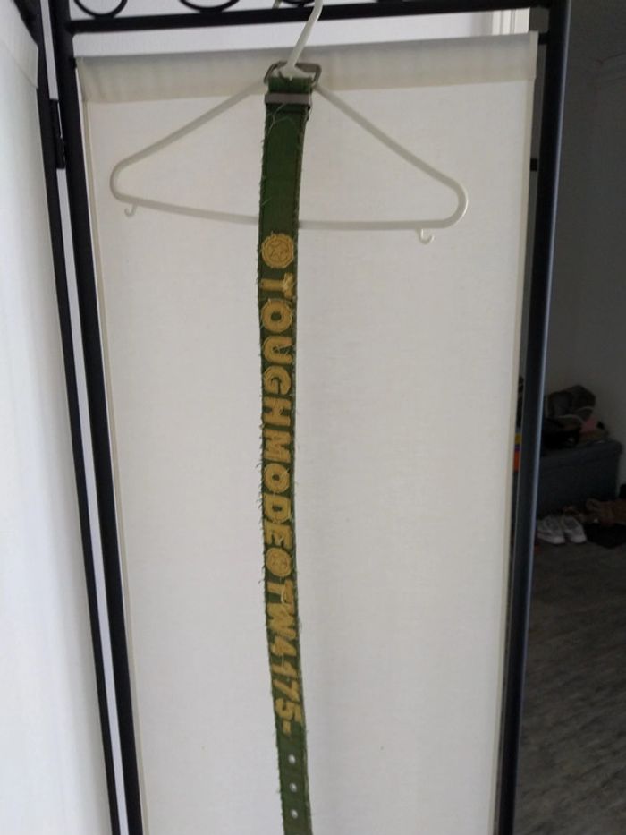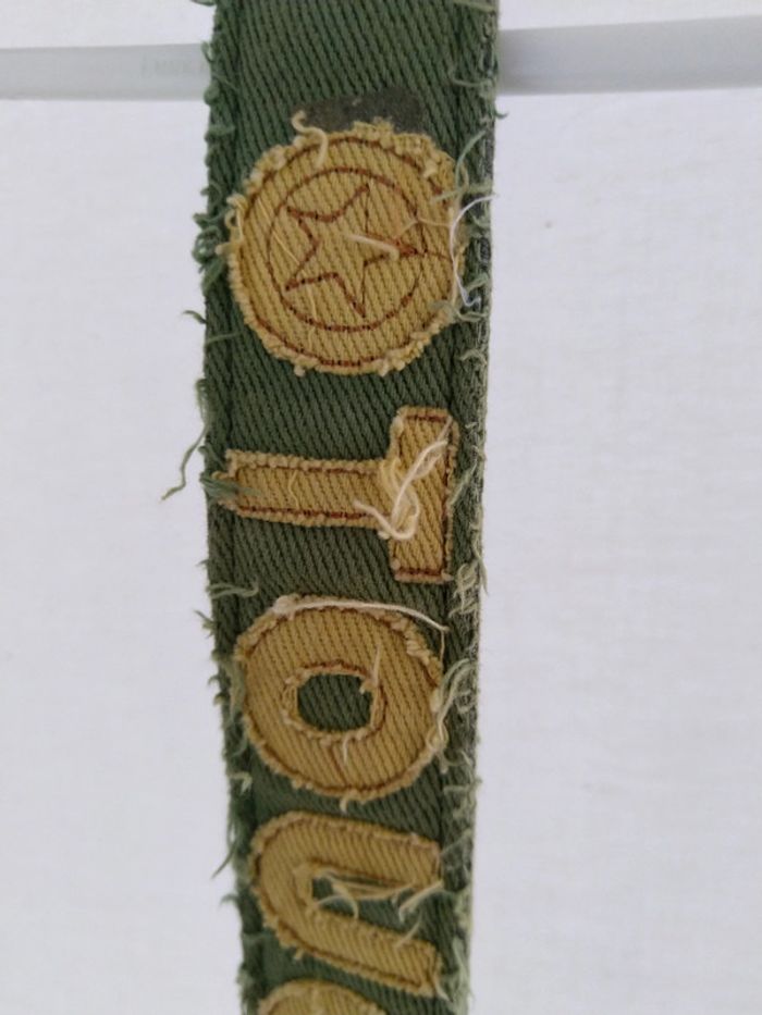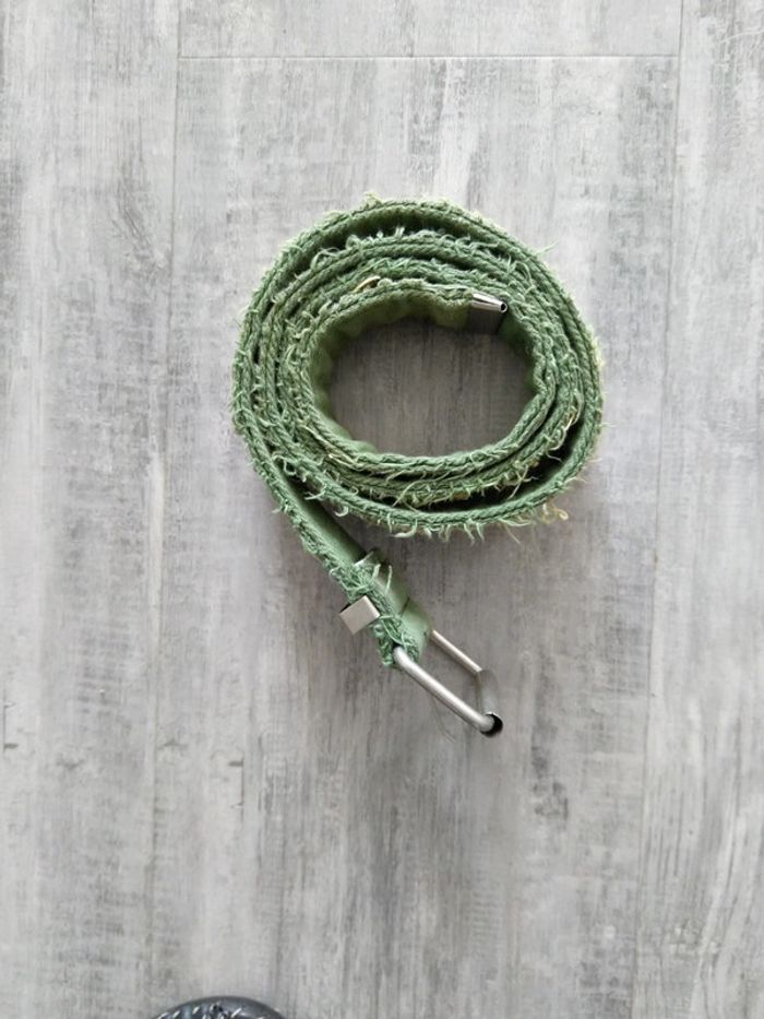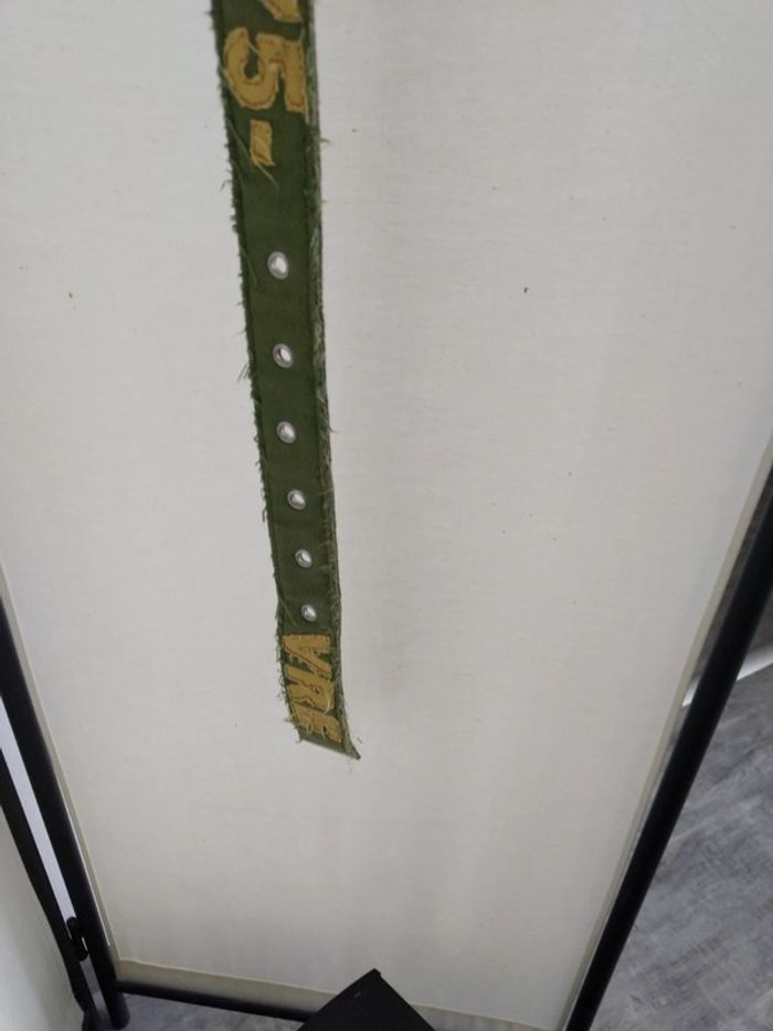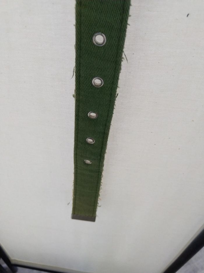 Ceinture tissu kaki effet "effiloché". Longueur 102cm. Neuve jamais utilisée.