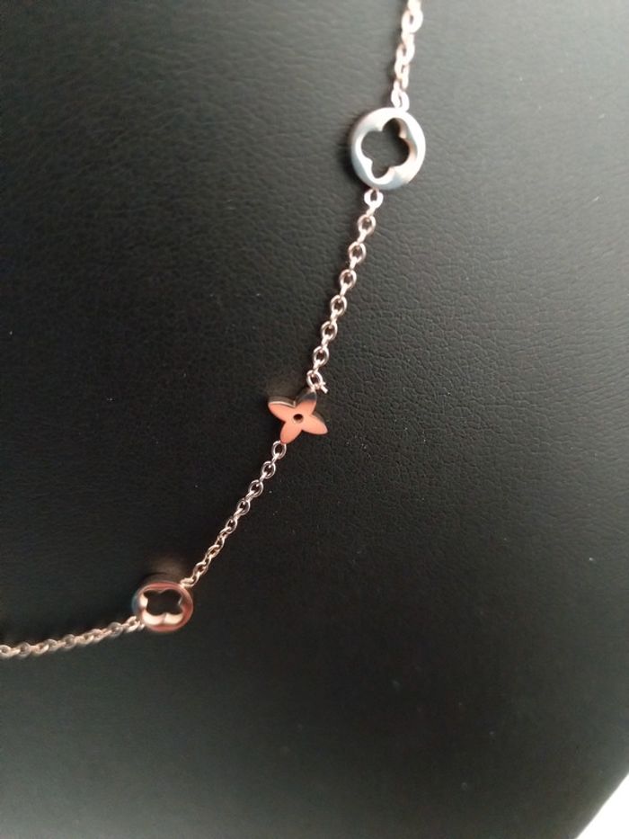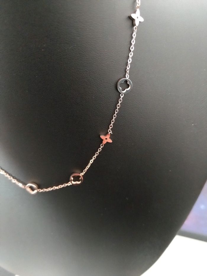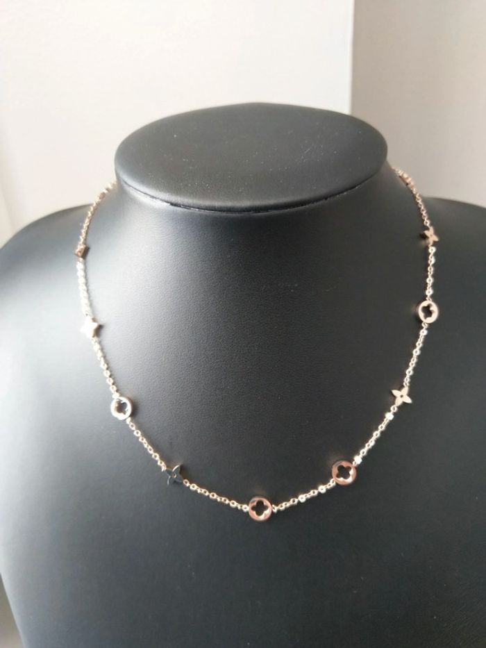 Superbe collier inspiration grande marque de très bonne qualité. Acier inoxydable Rose gold, 38cm+ rallonge. Neuf dans pochon organza.