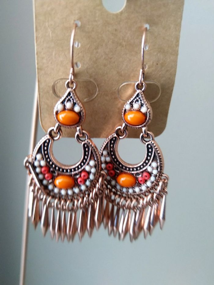 Boucles d'oreilles bohème vintage pampille - photo numéro 1