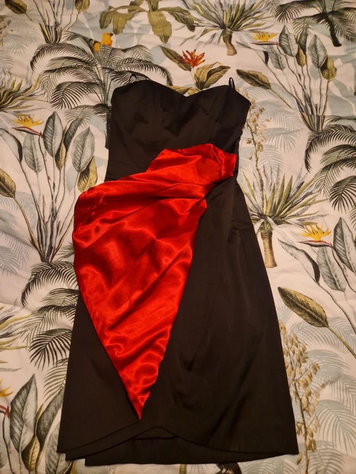 Très jolie petite robe bustier de marque naf naf en taille 34 Noir avec un revers rouge satin