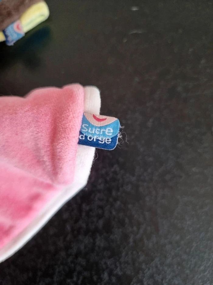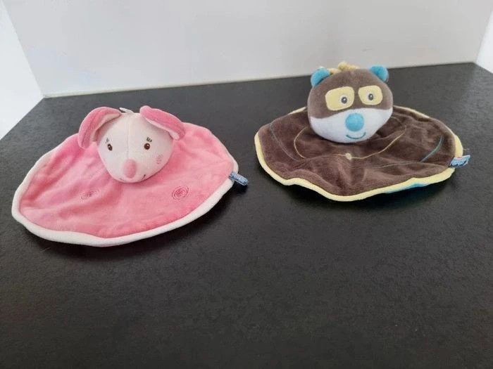 Doudous ronds Sucre d'Orge Dès la naissance Une souris rose et un raton laveur gris / marron Prix à l'unité Merci de préciser lequel vous souhaitez #Conniebébé #doudou #bébé #nouveauné #Sucredorge