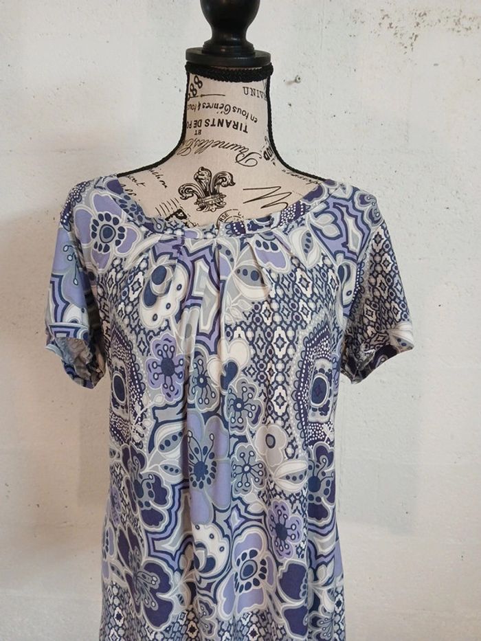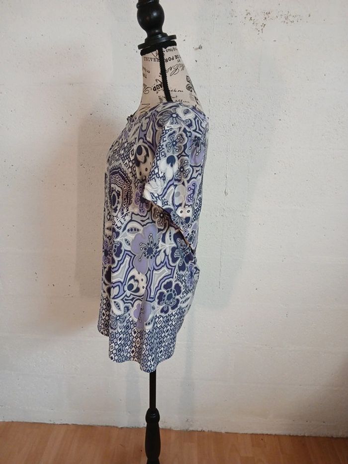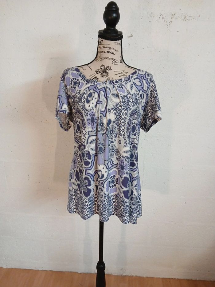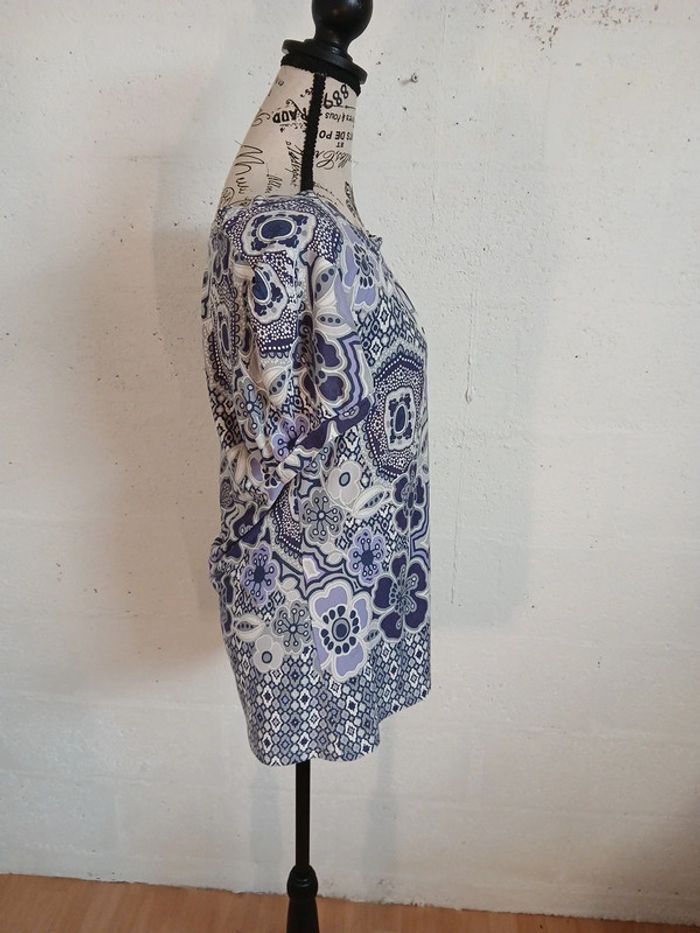 Blouse dans les tons violets État satisfaisant, tissu qui a tendance à faire des petites Peluches Taille 46/46 Tissu souple avec elasthanne Largeur aisselles 52 cm Longueur 66 cm 🌈 Pensez au lot afin de limiter les frais de port mais aussi pour faire des économies car les réductions sont actives dès 2 articles 😍 🌈