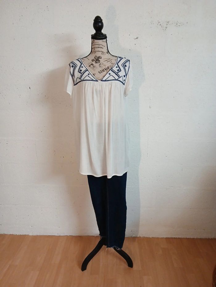 Blouse fluide in extenso Taille 42, taille grand État satisfaisant, quelques fils ont été tires. Largeur aisselles 57 cm Longueur dos 75 cm Plus d etiquette matiere Autres articles à retrouver en vente séparément dans mon dressing Jeans skinny kiabi 42 🌈 Pensez au lot afin de limiter les frais de port mais aussi pour faire des économies car les réductions sont actives dès 2 articles 😍 🌈