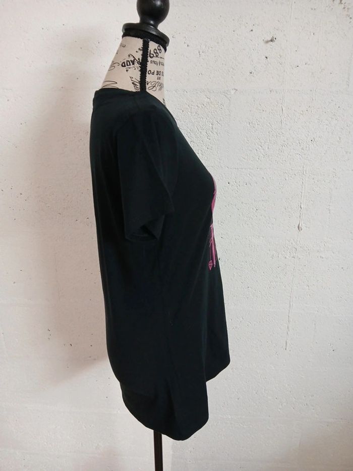 T shirt noir tbe Motifs roses, fond noir Taille M Largeur aisselles 48 cm Longueur dos 67 cm 🌈 Pensez au lot afin de limiter les frais de port mais aussi pour faire des économies car les réductions sont actives dès 2 articles 😍 🌈