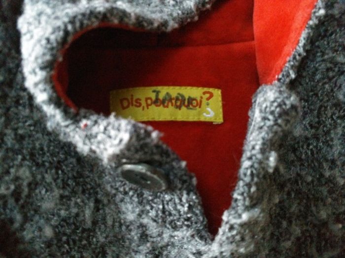 Marque "DIS POURQUOI?", gris effet bouloché normal, doublure molleton rouge, très chaud.