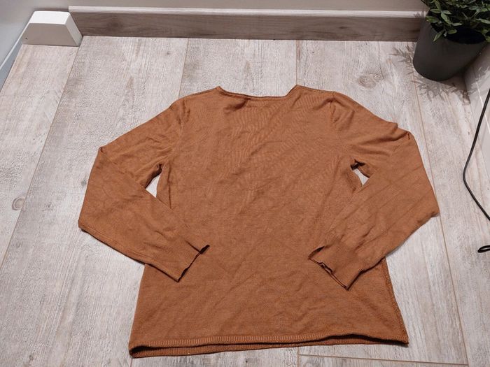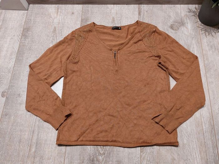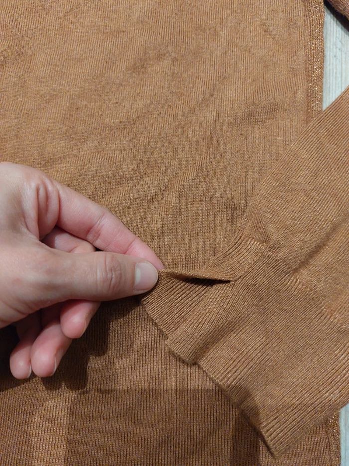 T-Shirt manches longues couleur camel de la marque Bréal. Avec effet brillant. Étiquette de la taille coupée. Convient pour un L. En bon état mais présence de quelques bouloches par endroit.