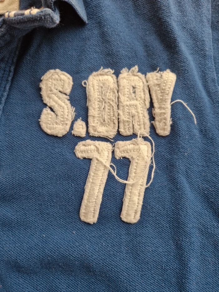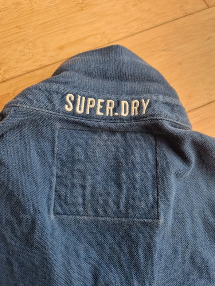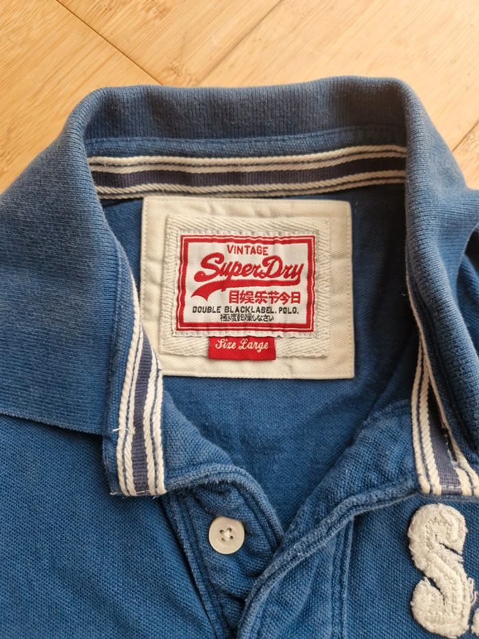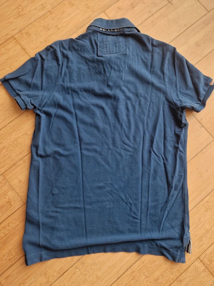 Polo à manches courtes pour homme Taille L Marque SuperDry 100% coton Coloris bleu Logo sur le bras Marque brodée au niveau du col derrière