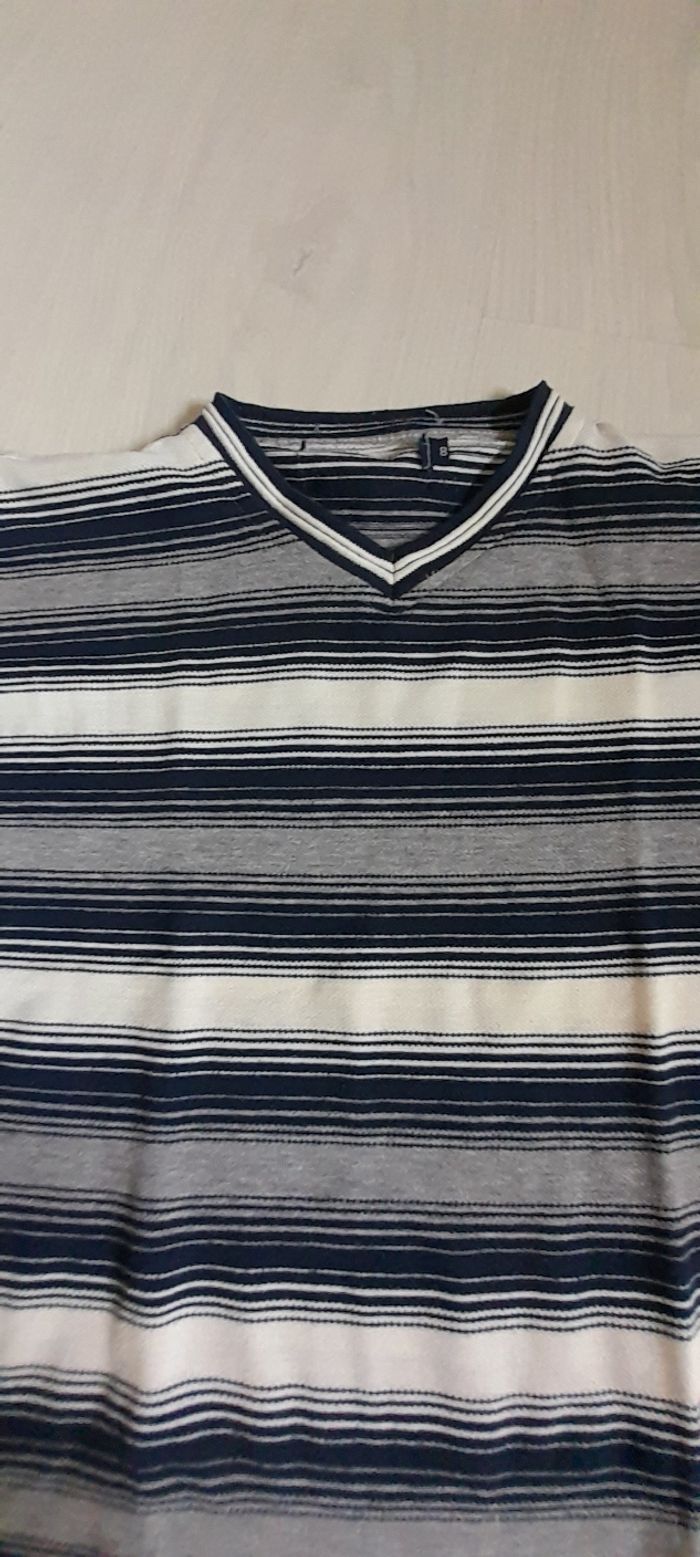 Tee-shir T 8 ans Couleur bleu marine et blanc Manches courtes Très très bon état