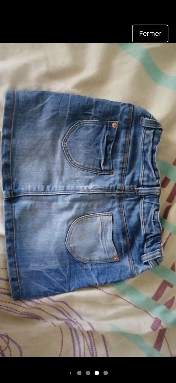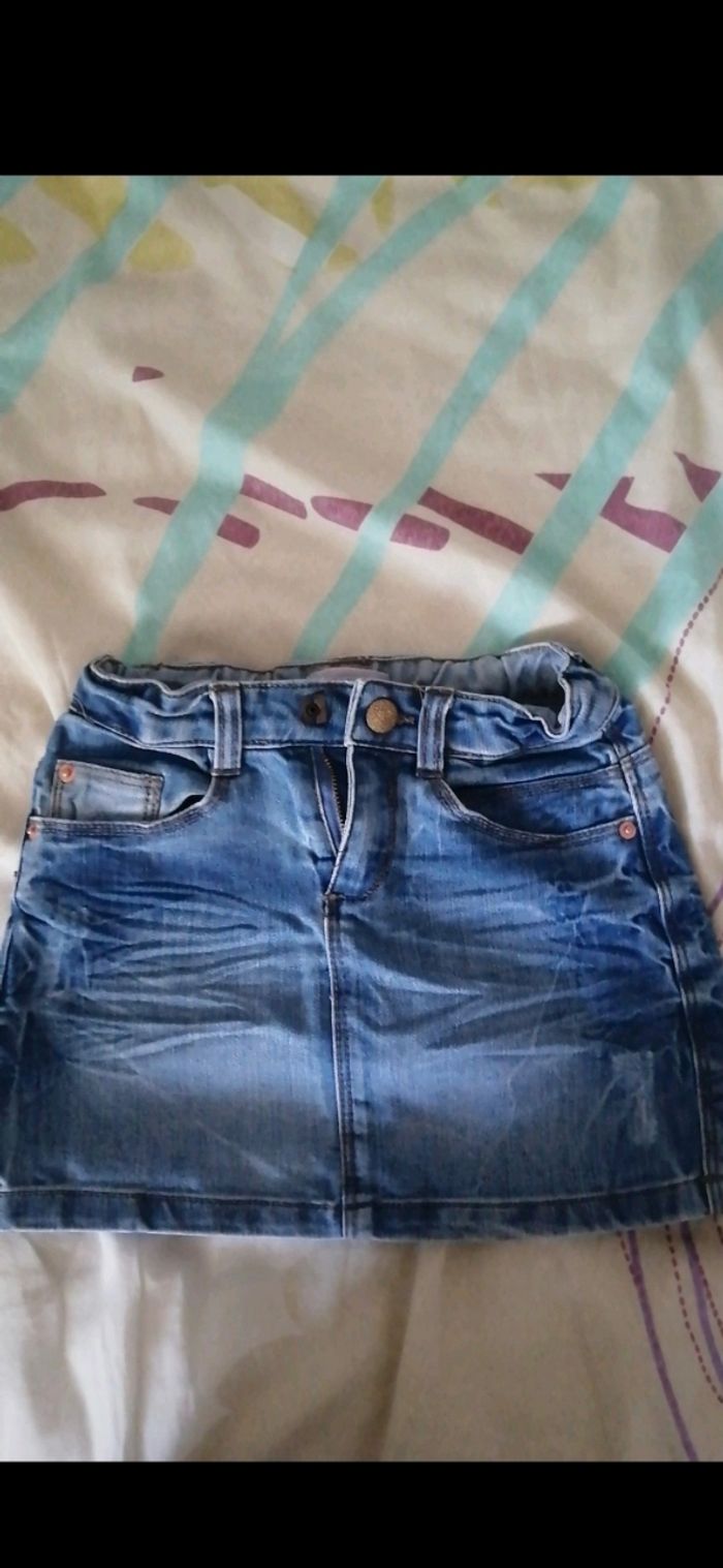 Jupe en jeans fille. Bouton d'attache et élastique pour ajuster la taille. De taille 6 ans