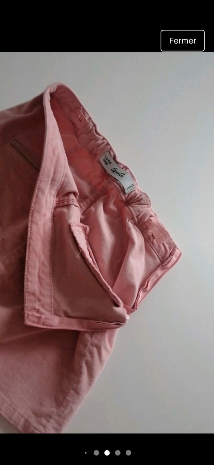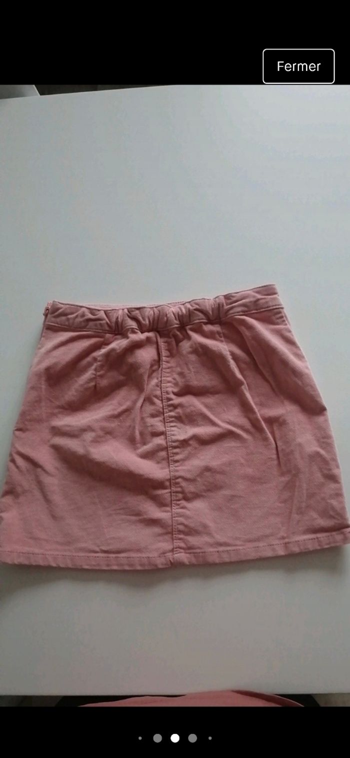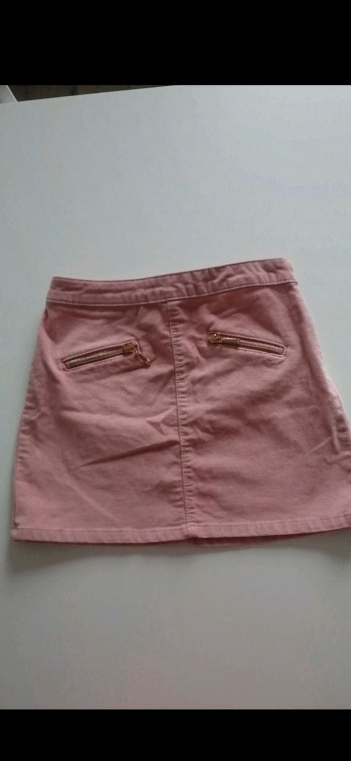 Jupe courte fille vieux rose. Touché doux (comme du velour) Détails fermeture devant fausses poches taille 9/10 ans.